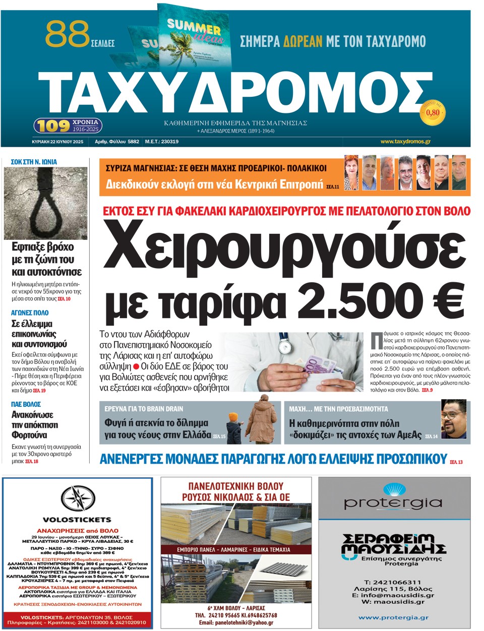 ΤΑΧΥΔΡΟΜΟΣ - 22 Ιουνίου 2025