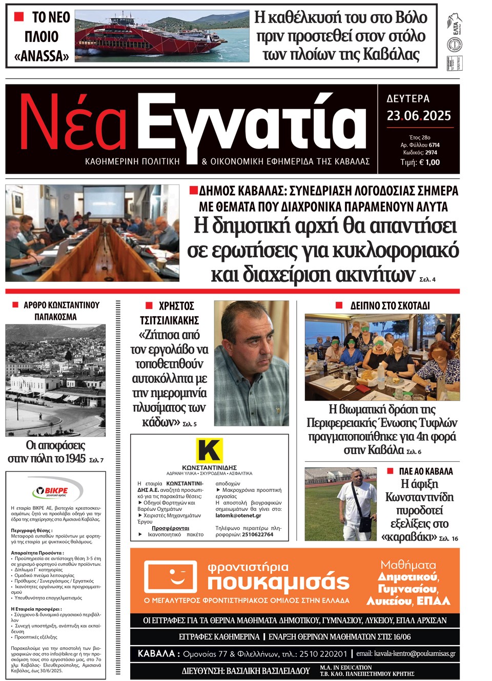 ΝΕΑ ΕΓΝΑΤΙΑ - 23 Ιουνίου 2025