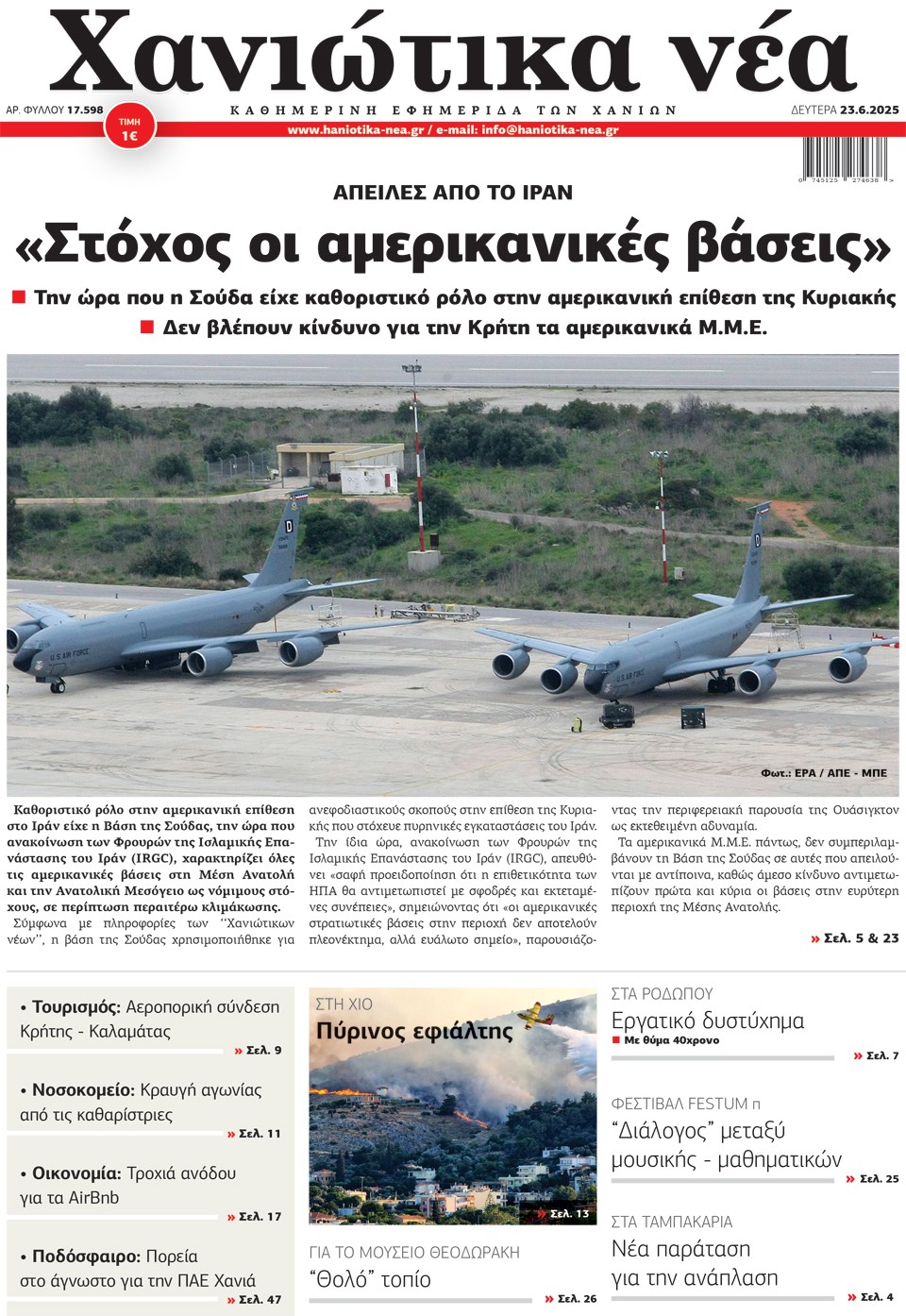 ΧΑΝΙΩΤΙΚΑ ΝΕΑ - 23 Ιουνίου 2025