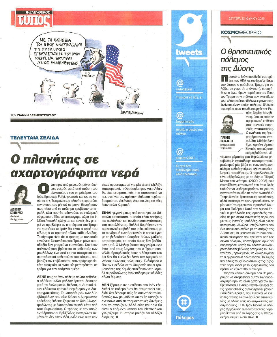 ΕΛΕΥΘΕΡΟΣ ΤΥΠΟΣ - 23 Ιουνίου 2025