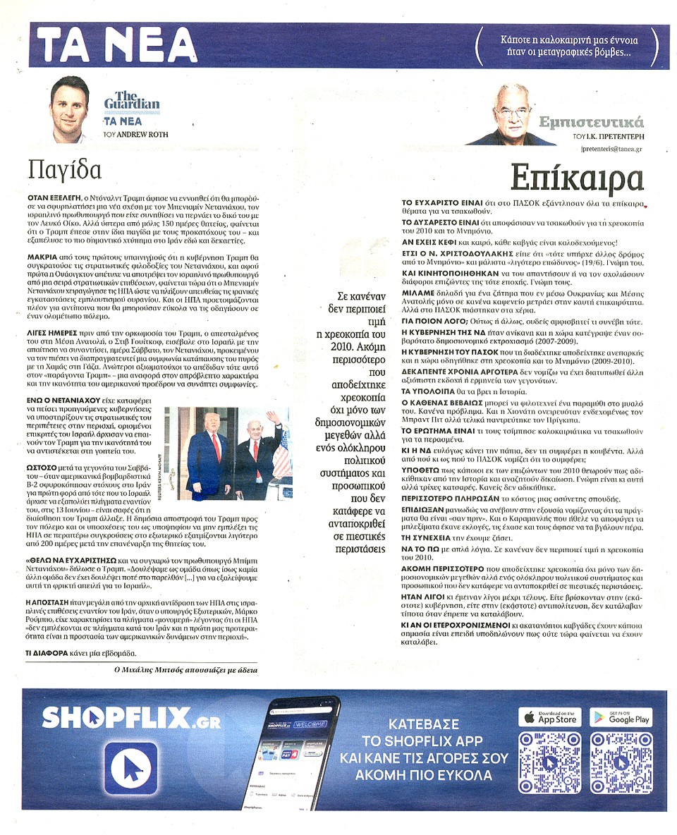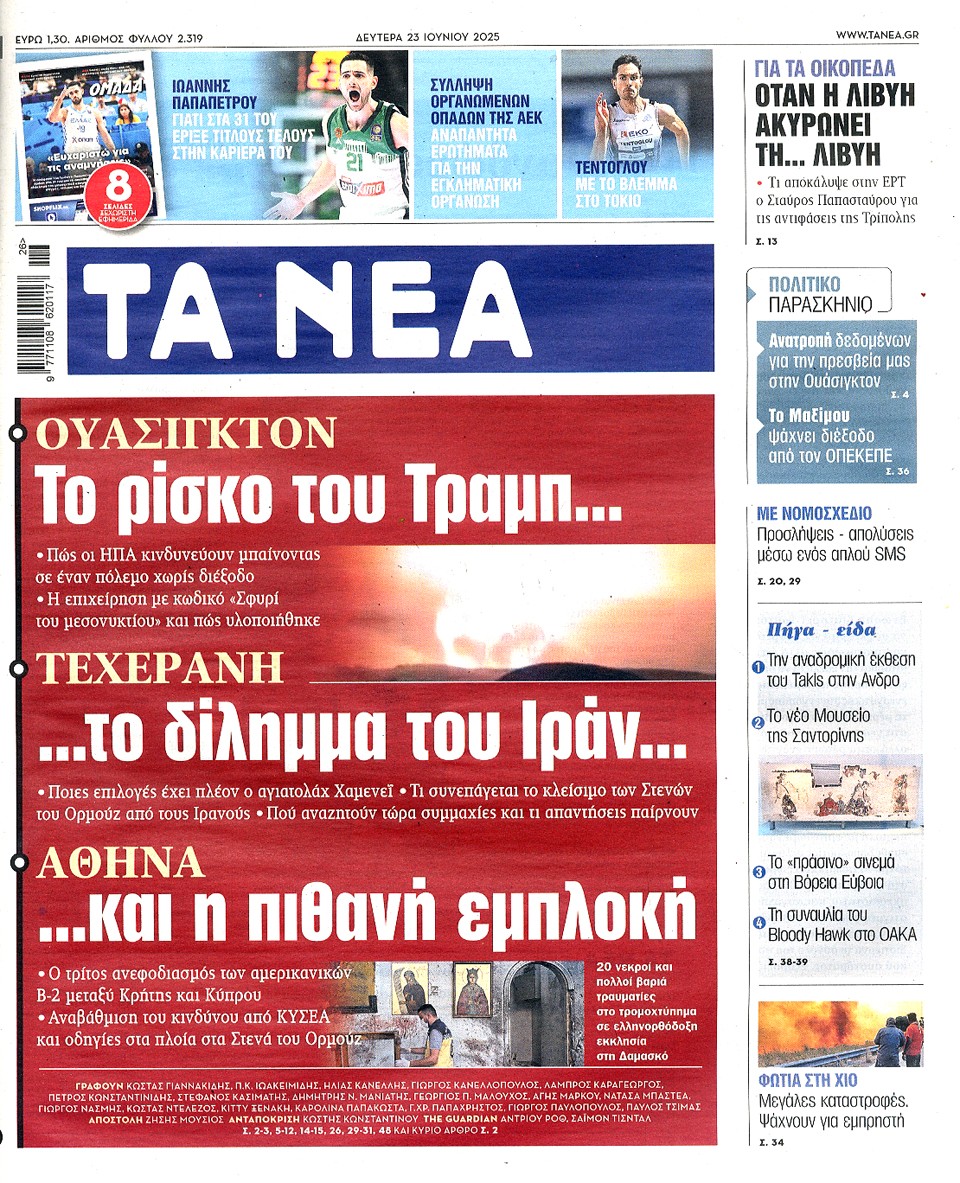 ΤΑ ΝΕΑ - 23 Ιουνίου 2025
