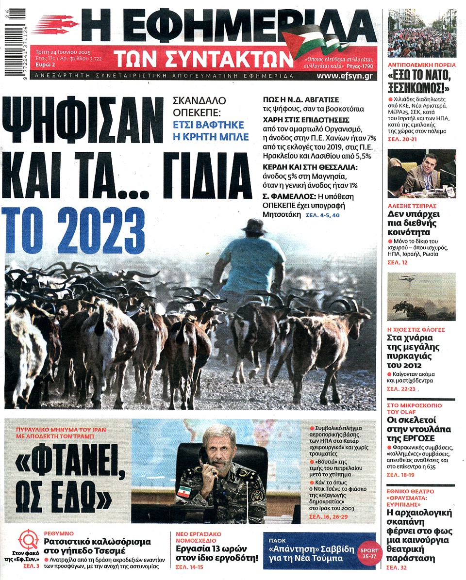 Η ΕΦΗΜΕΡΙΔΑ ΤΩΝ ΣΥΝΤΑΚΤΩΝ - 24 Ιουνίου 2025