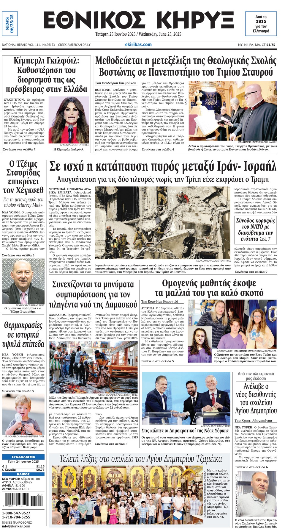 ΕΘΝΙΚΟΣ ΚΗΡΥΞ - 25 Ιουνίου 2025