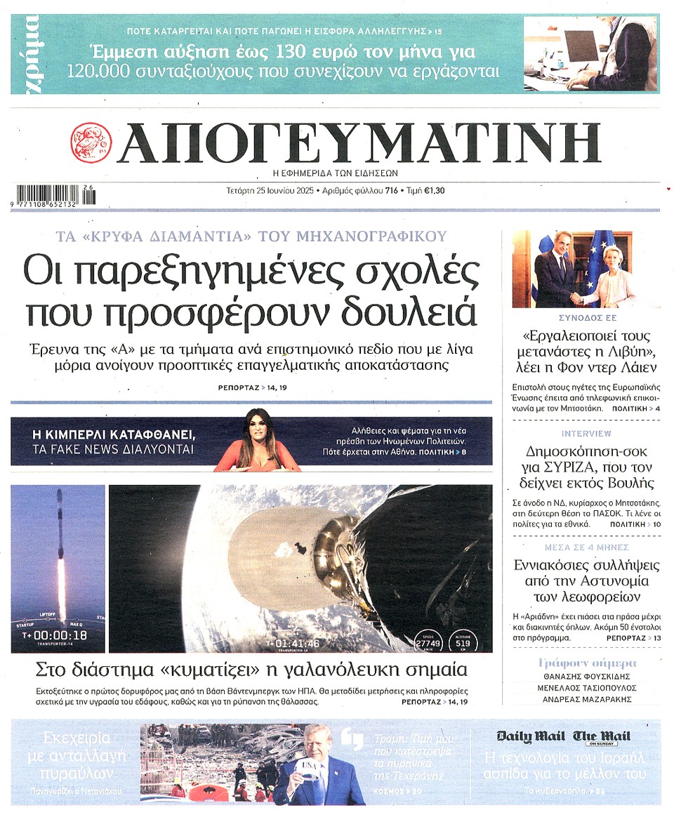 ΑΠΟΓΕΥΜΑΤΙΝΗ - 25 Ιουνίου 2025