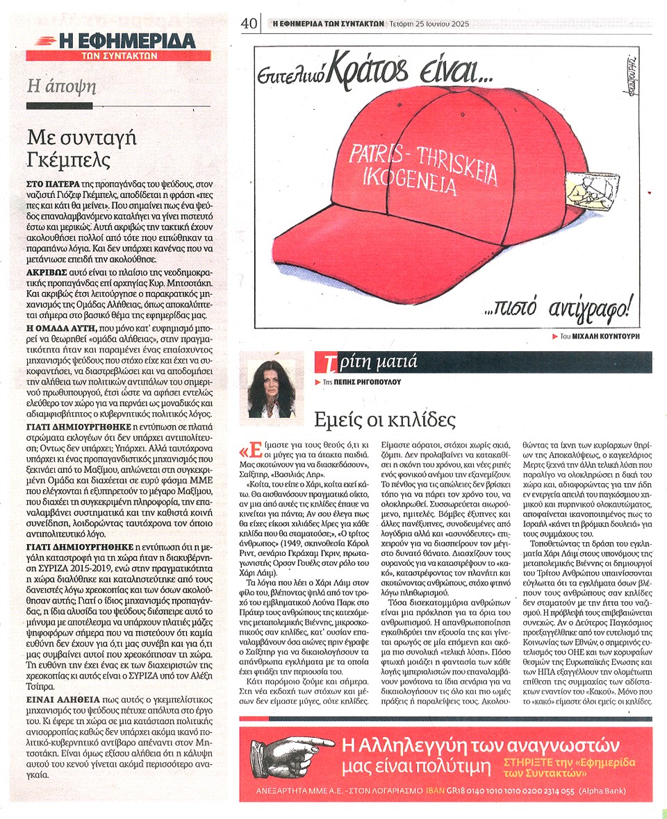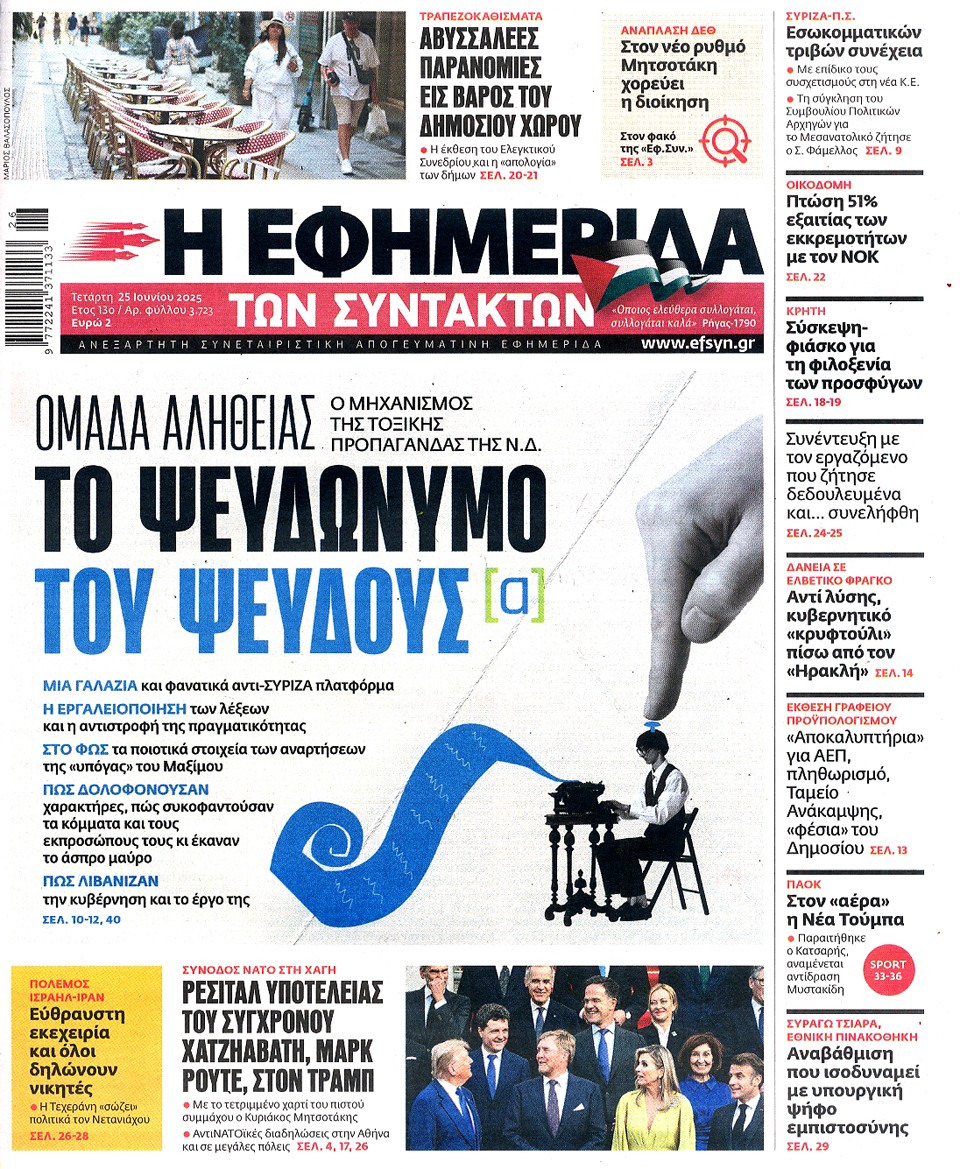 Η ΕΦΗΜΕΡΙΔΑ ΤΩΝ ΣΥΝΤΑΚΤΩΝ - 25 Ιουνίου 2025