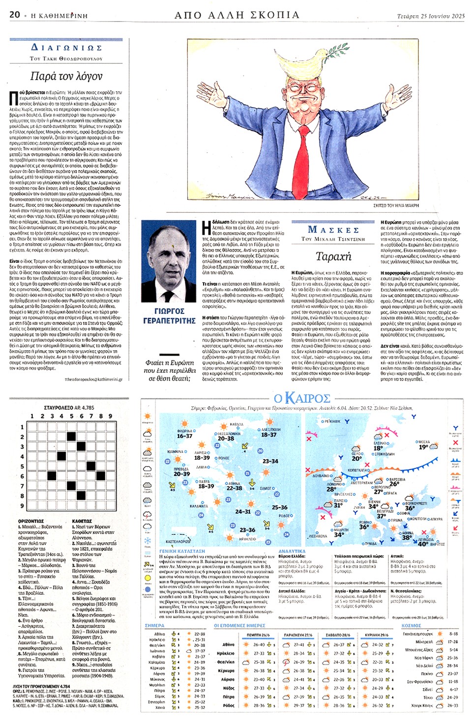 ΚΑΘΗΜΕΡΙΝΗ - 25 Ιουνίου 2025
