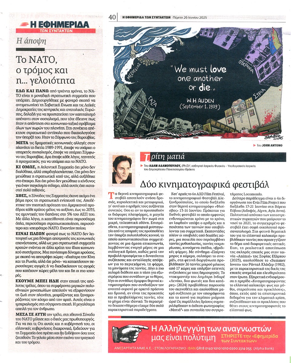 Η ΕΦΗΜΕΡΙΔΑ ΤΩΝ ΣΥΝΤΑΚΤΩΝ - 26 Ιουνίου 2025