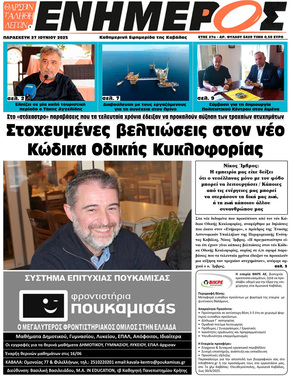 ΕΝΗΜΕΡΟΣ - 27 Ιουνίου 2025