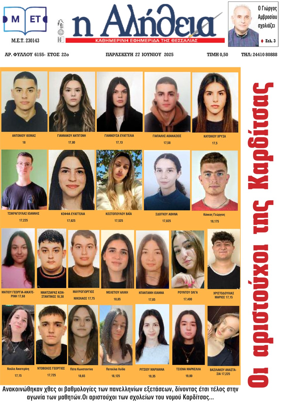Η ΑΛΗΘΕΙΑ - 27 Ιουνίου 2025
