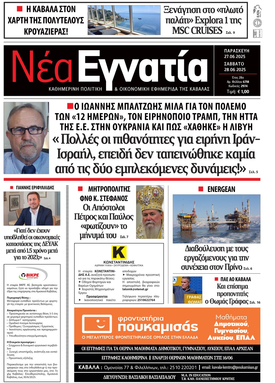 ΝΕΑ ΕΓΝΑΤΙΑ - 27 Ιουνίου 2025
