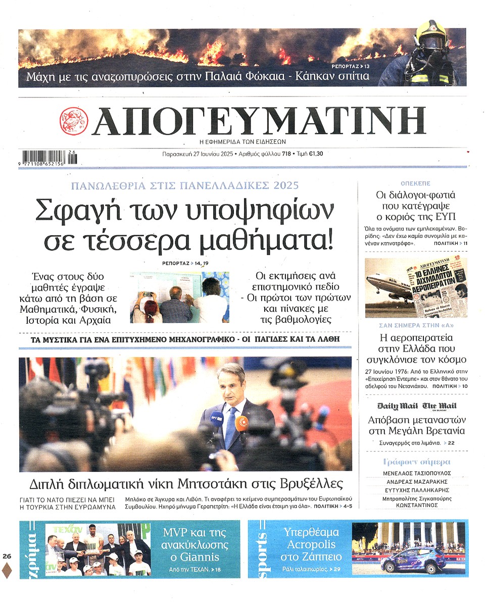 ΑΠΟΓΕΥΜΑΤΙΝΗ - 27 Ιουνίου 2025