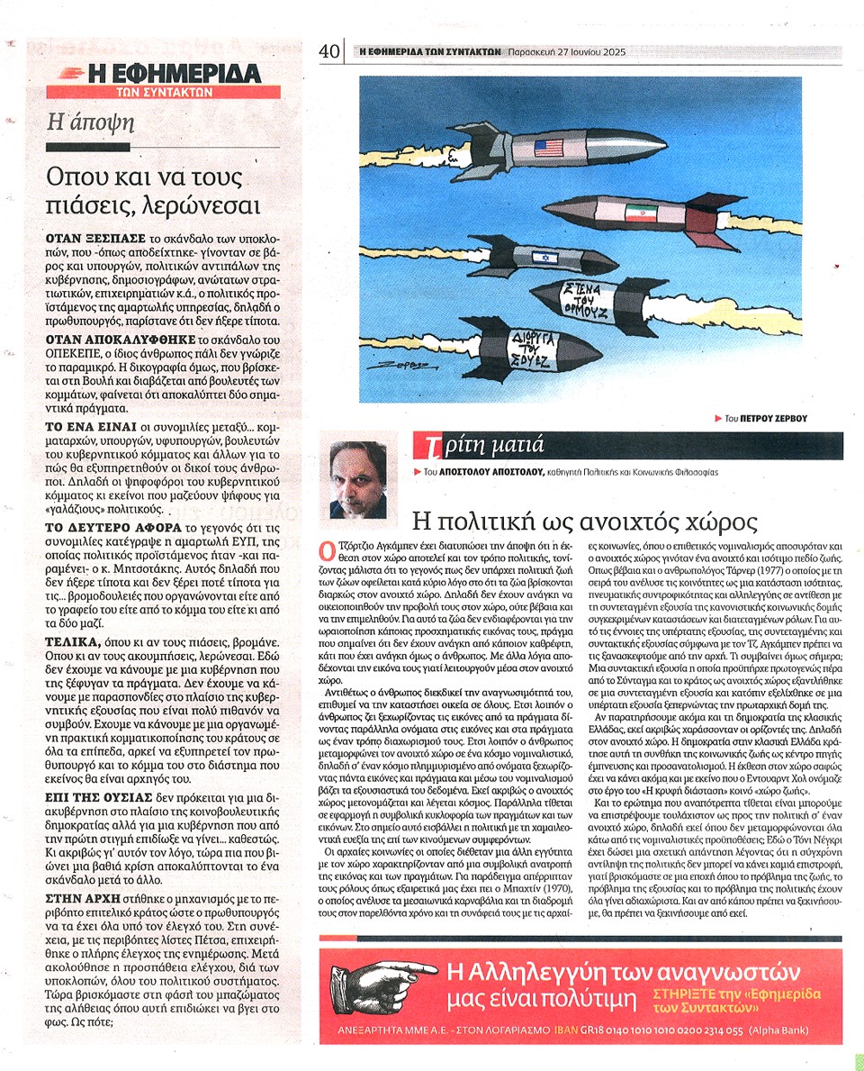 Η ΕΦΗΜΕΡΙΔΑ ΤΩΝ ΣΥΝΤΑΚΤΩΝ - 27 Ιουνίου 2025