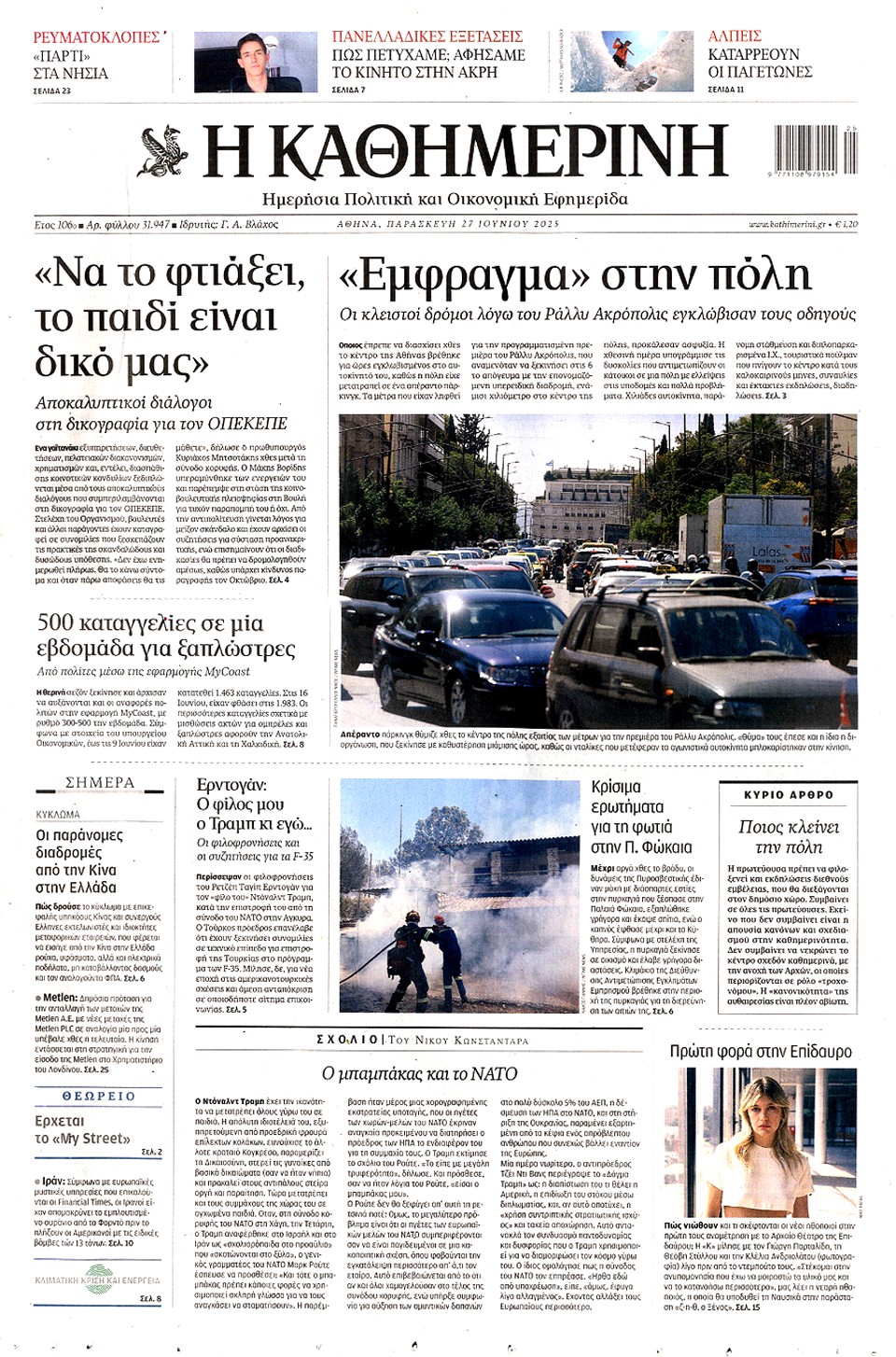 ΚΑΘΗΜΕΡΙΝΗ - 27 Ιουνίου 2025