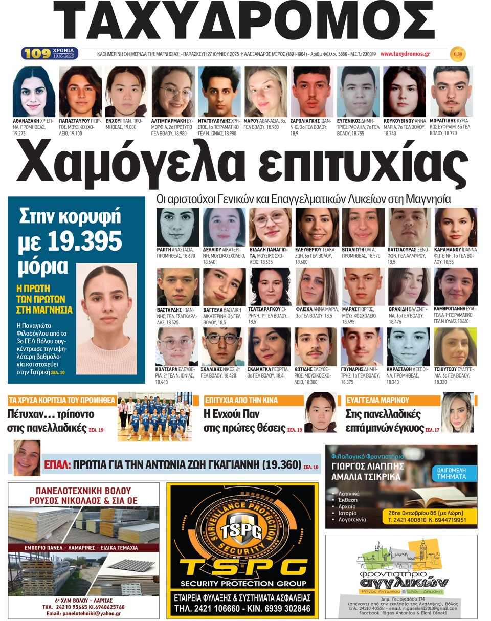 ΤΑΧΥΔΡΟΜΟΣ - 27 Ιουνίου 2025