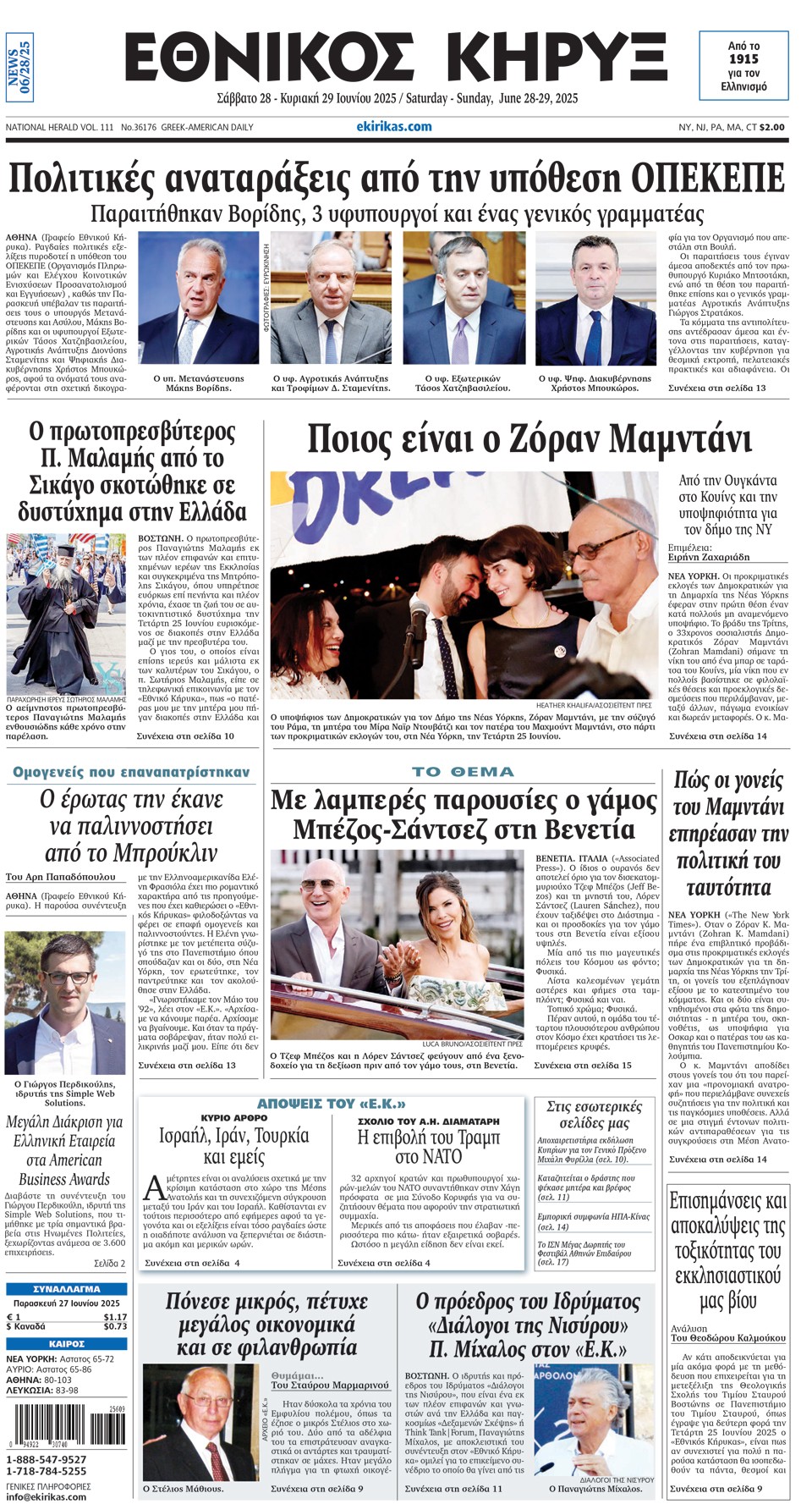ΕΘΝΙΚΟΣ ΚΗΡΥΞ - 28 Ιουνίου 2025