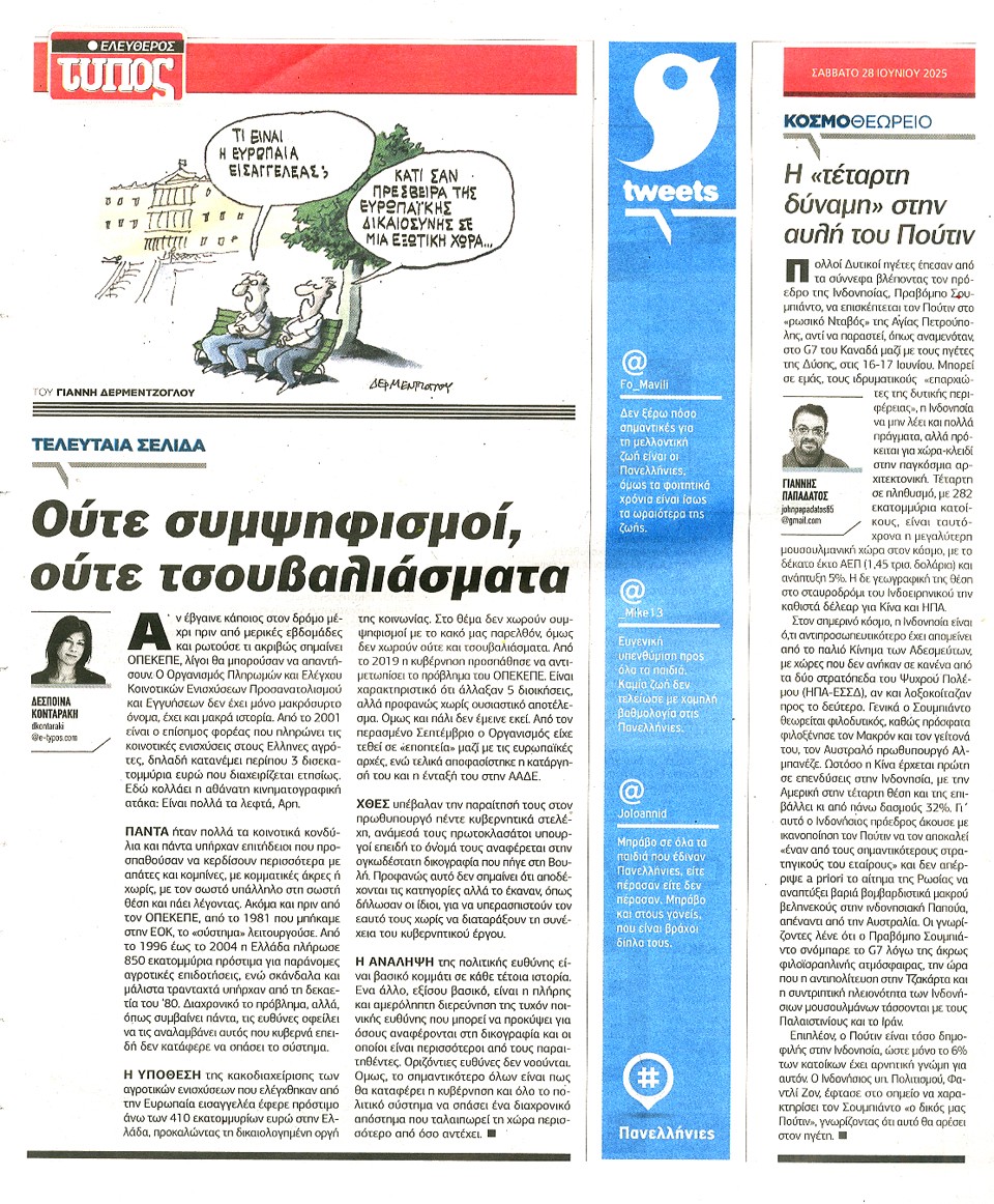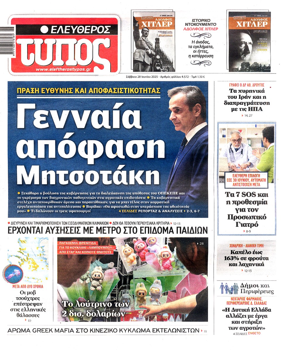 ΕΛΕΥΘΕΡΟΣ ΤΥΠΟΣ - 28 Ιουνίου 2025