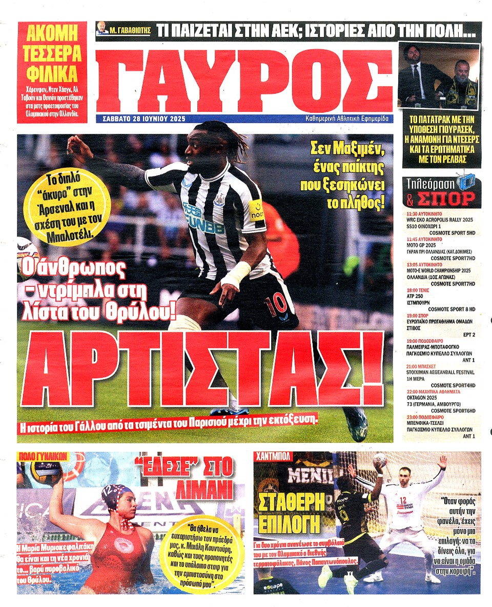 ΠΡΩΤΑΘΛΗΤΗΣ - 28 Ιουνίου 2025