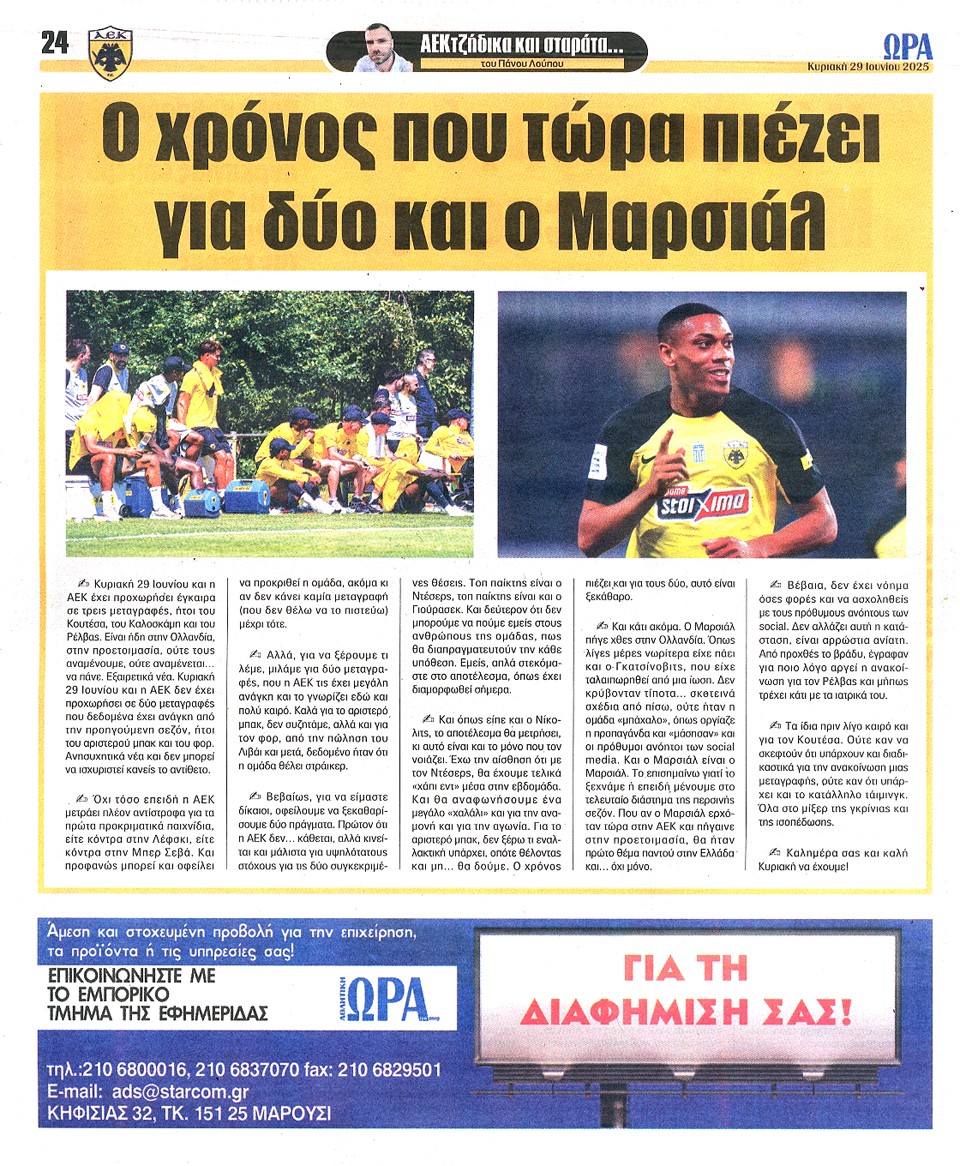 ΑΘΛΗΤΙΚΗ ΩΡΑ ΤΩΝ ΣΠΟΡ - 29 Ιουνίου 2025
