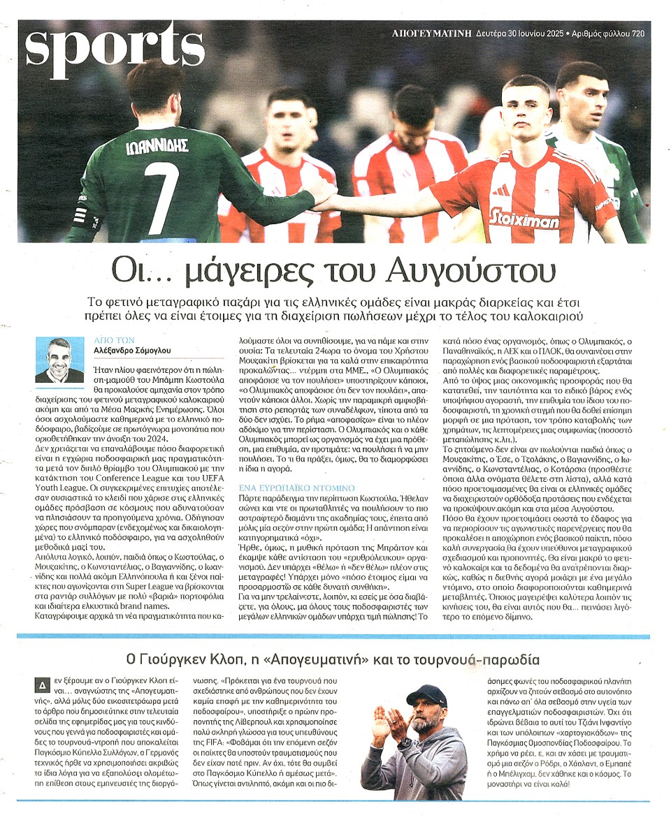 ΑΠΟΓΕΥΜΑΤΙΝΗ - 30 Ιουνίου 2025