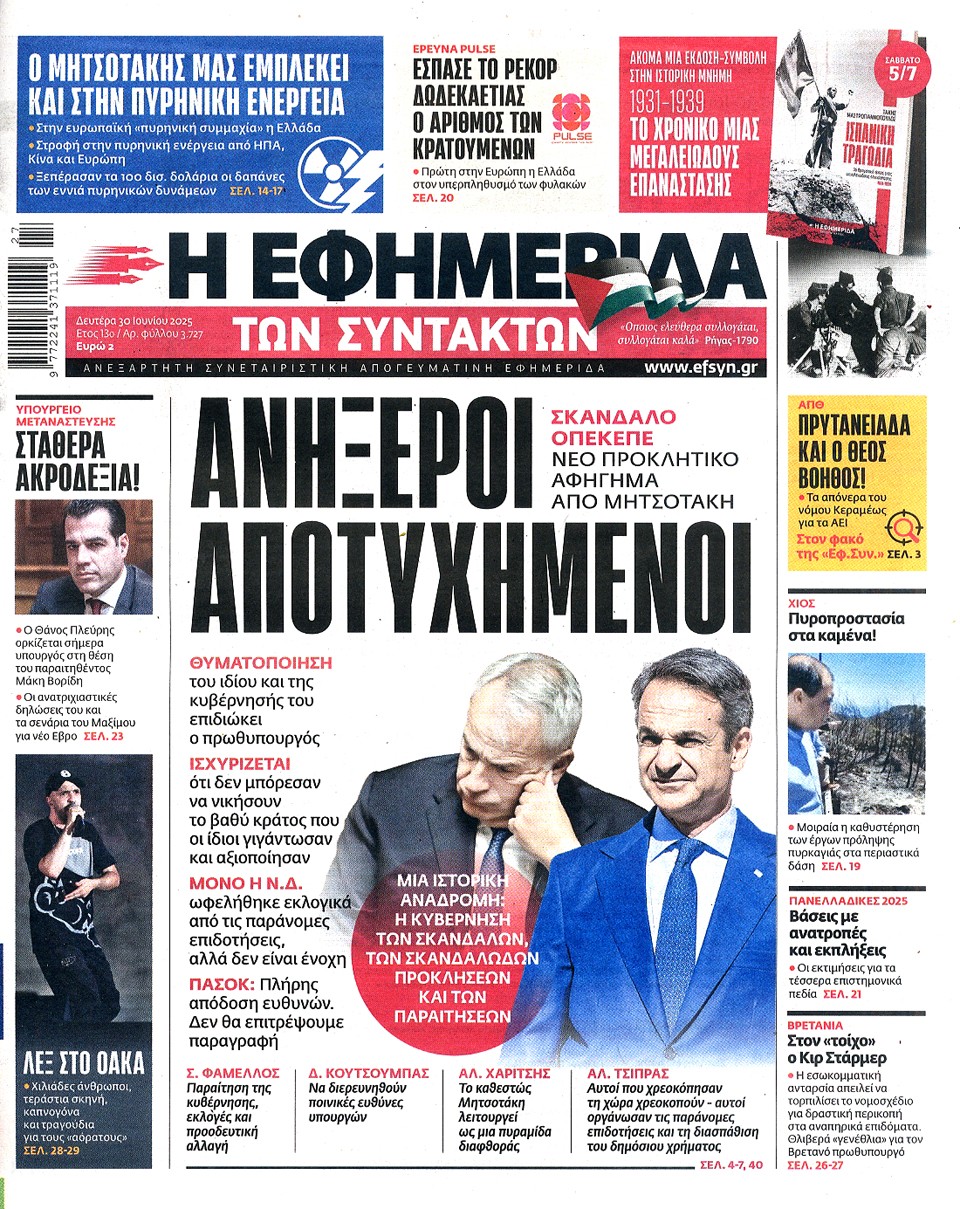 Η ΕΦΗΜΕΡΙΔΑ ΤΩΝ ΣΥΝΤΑΚΤΩΝ - 30 Ιουνίου 2025