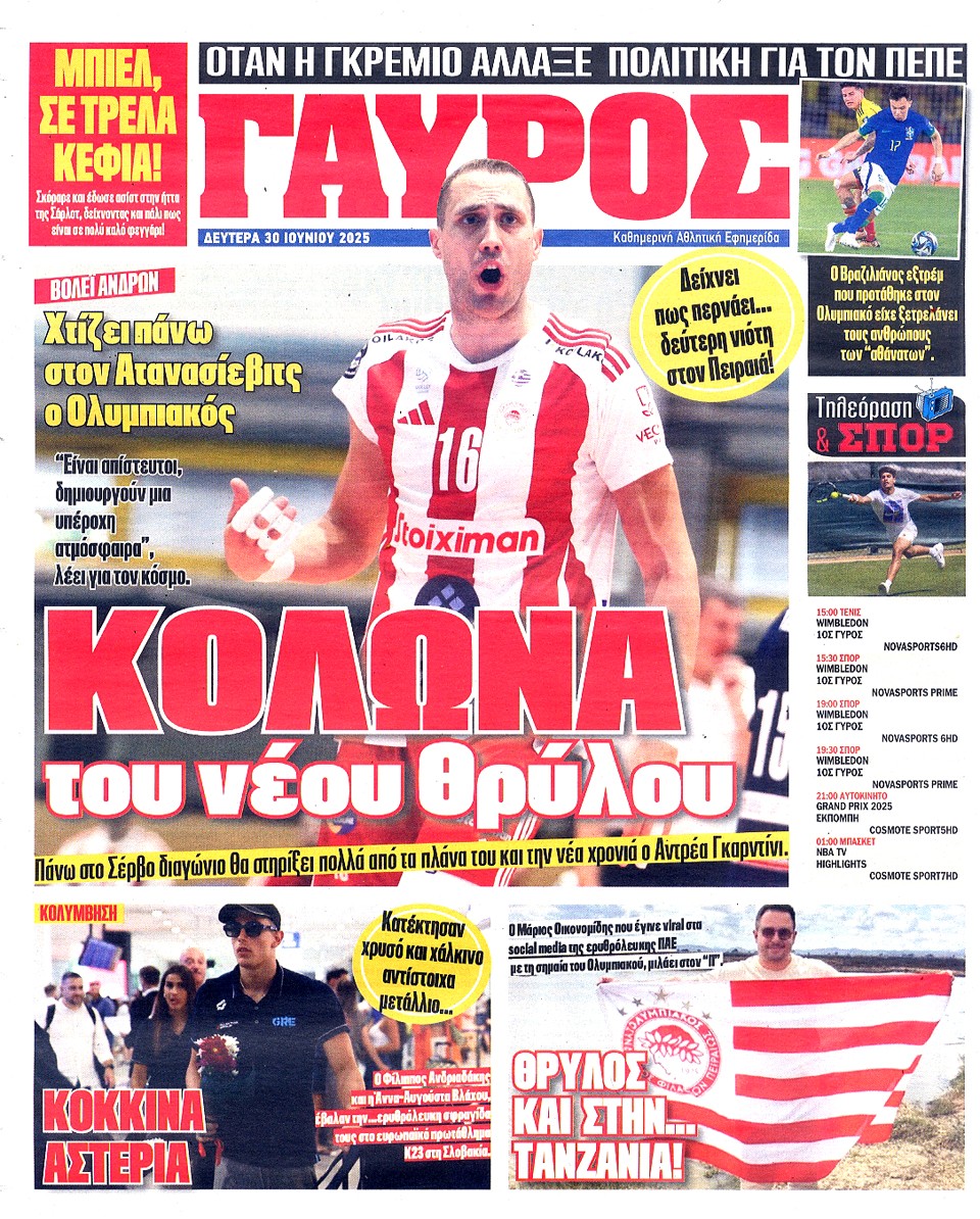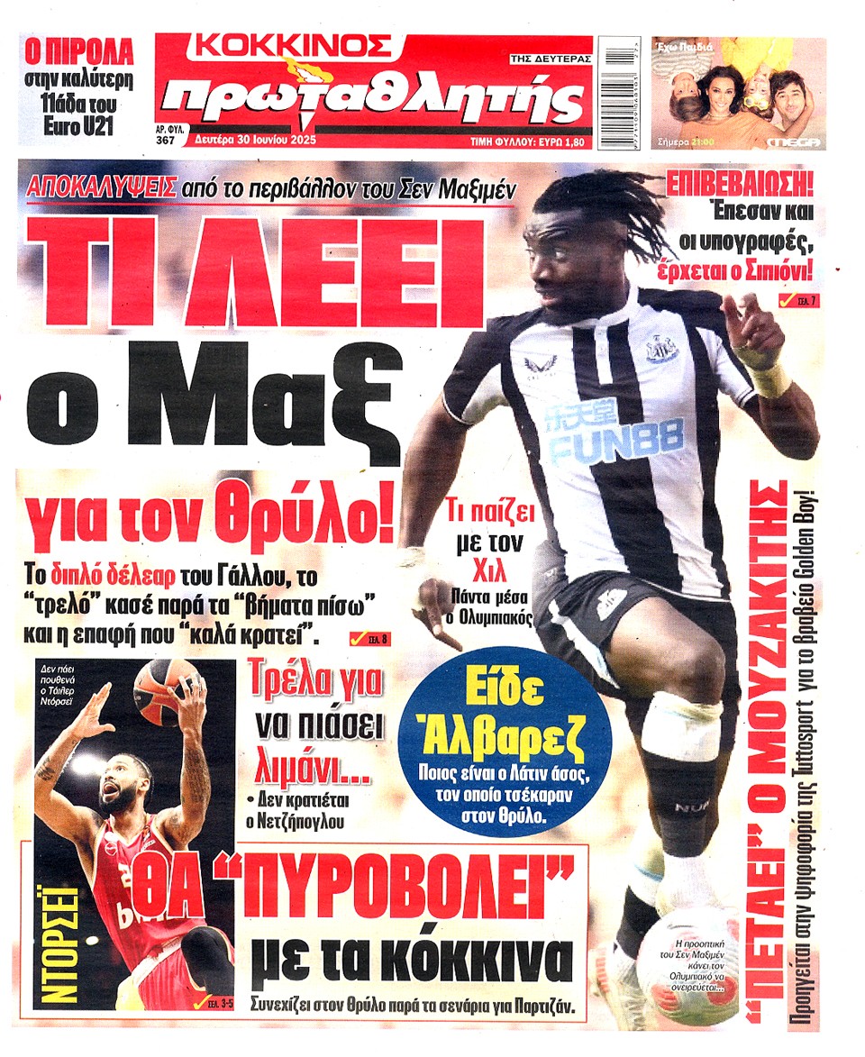 ΠΡΩΤΑΘΛΗΤΗΣ - 30 Ιουνίου 2025