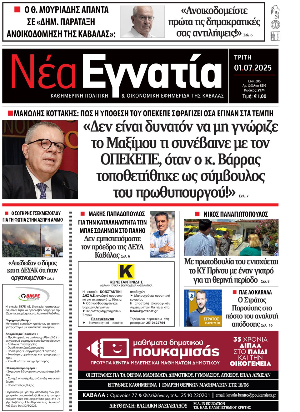 ΝΕΑ ΕΓΝΑΤΙΑ - 01 Ιουλίου 2025