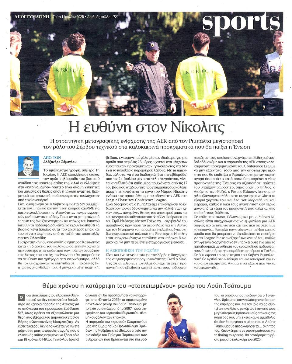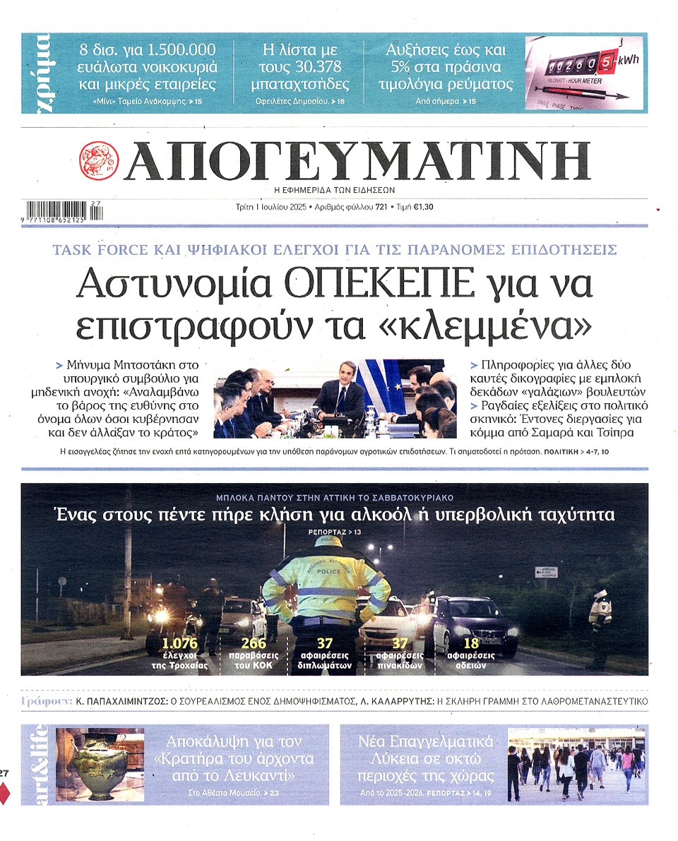 ΑΠΟΓΕΥΜΑΤΙΝΗ - 01 Ιουλίου 2025