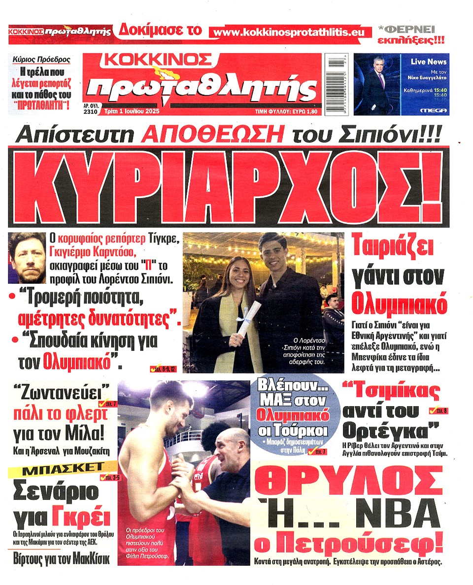 ΠΡΩΤΑΘΛΗΤΗΣ - 01 Ιουλίου 2025