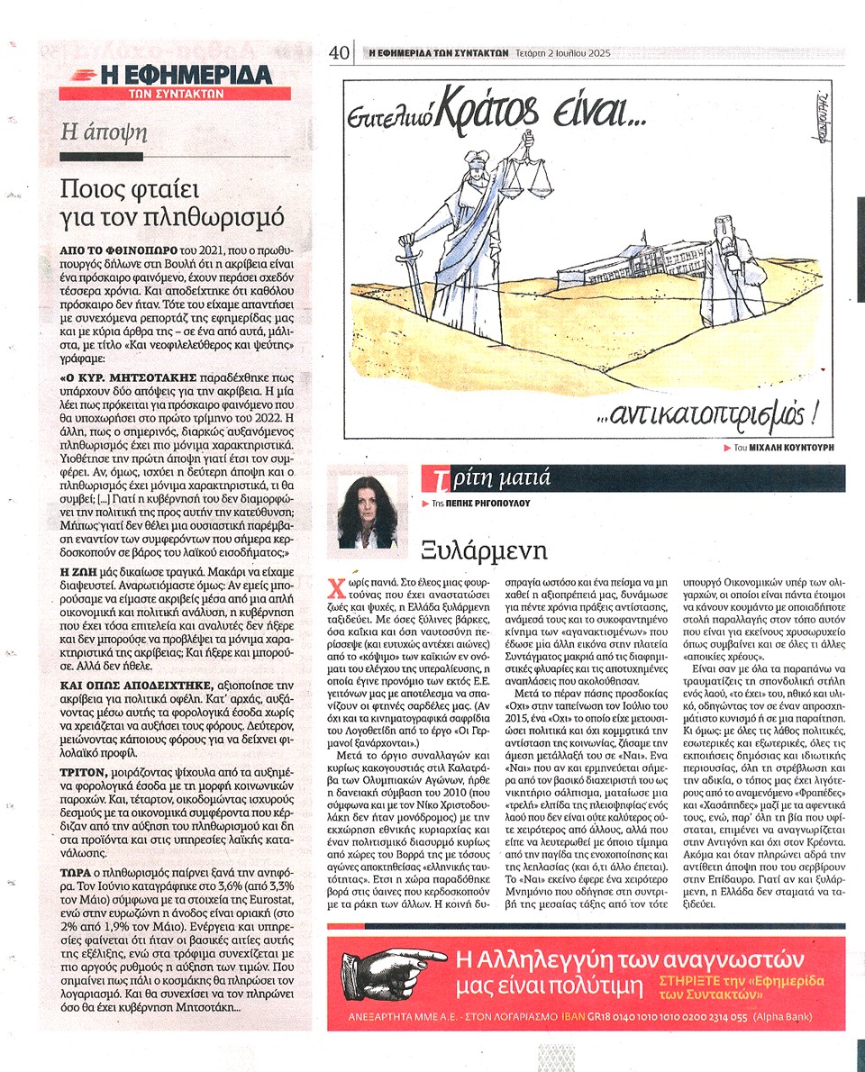 Η ΕΦΗΜΕΡΙΔΑ ΤΩΝ ΣΥΝΤΑΚΤΩΝ - 02 Ιουλίου 2025