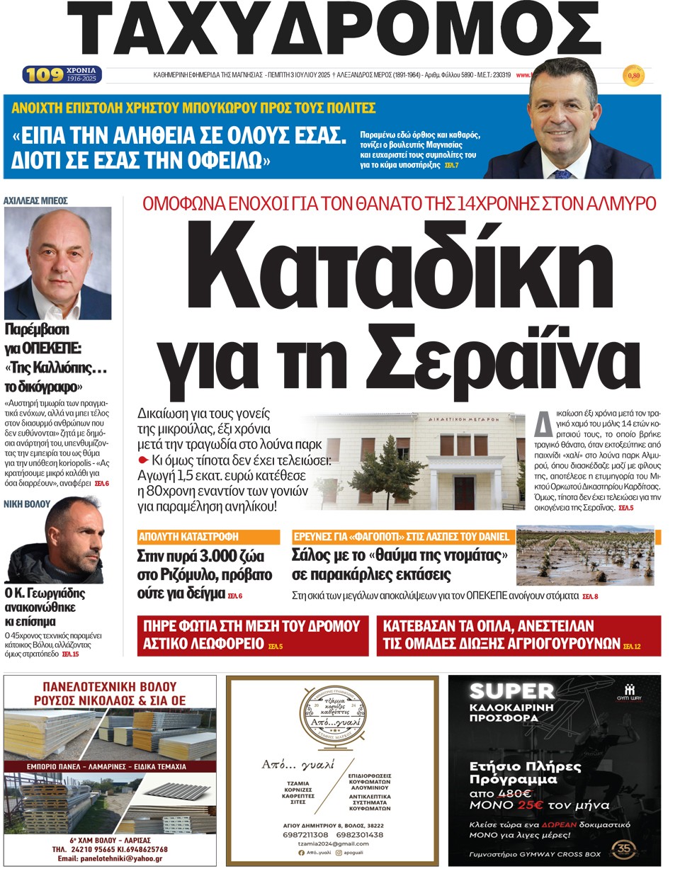 ΤΑΧΥΔΡΟΜΟΣ - 03 Ιουλίου 2025