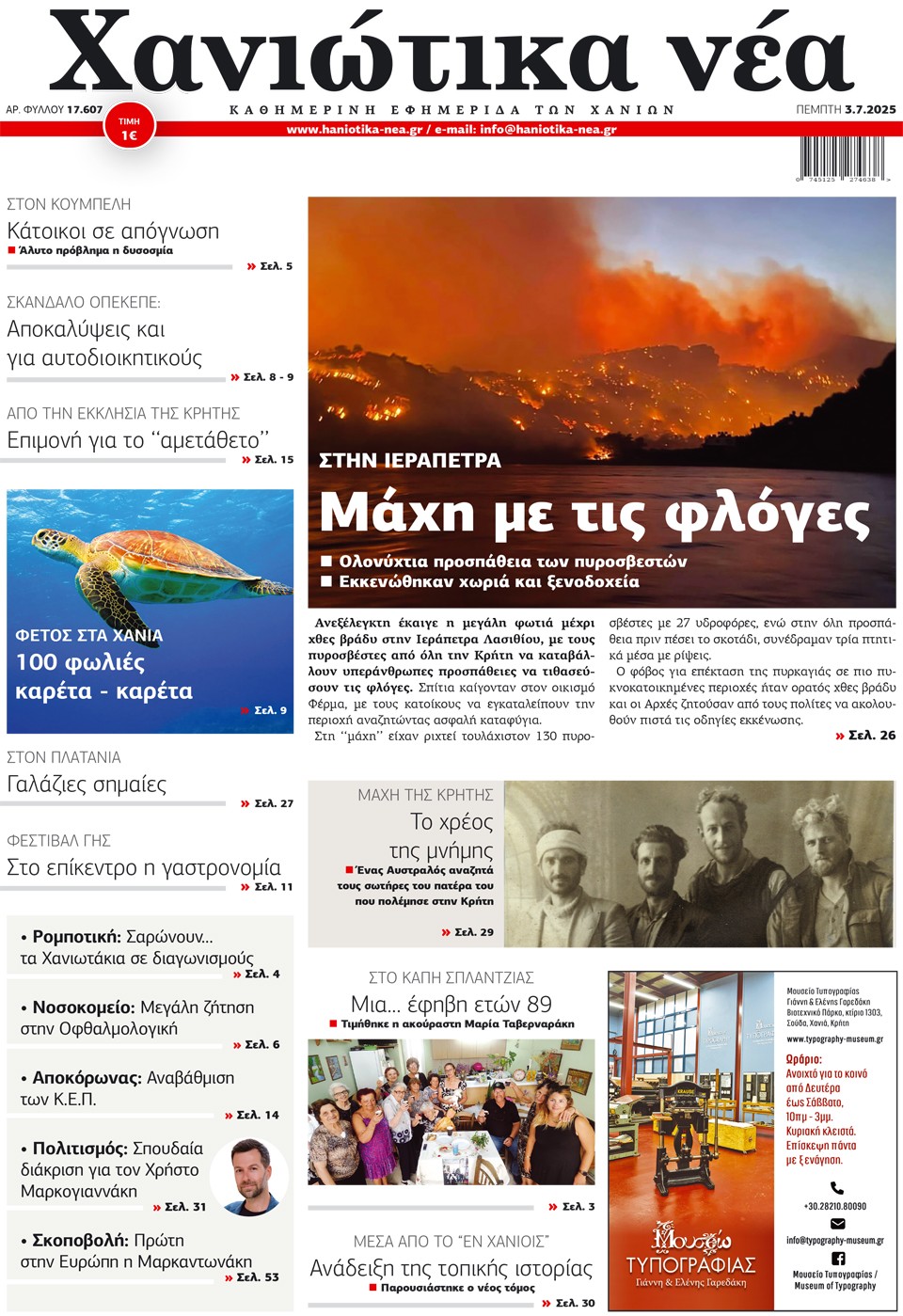 ΧΑΝΙΩΤΙΚΑ ΝΕΑ - 03 Ιουλίου 2025