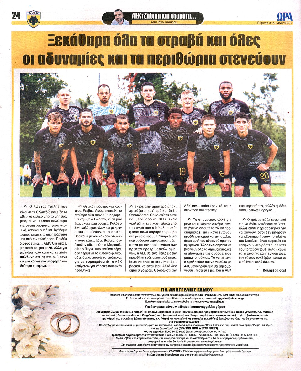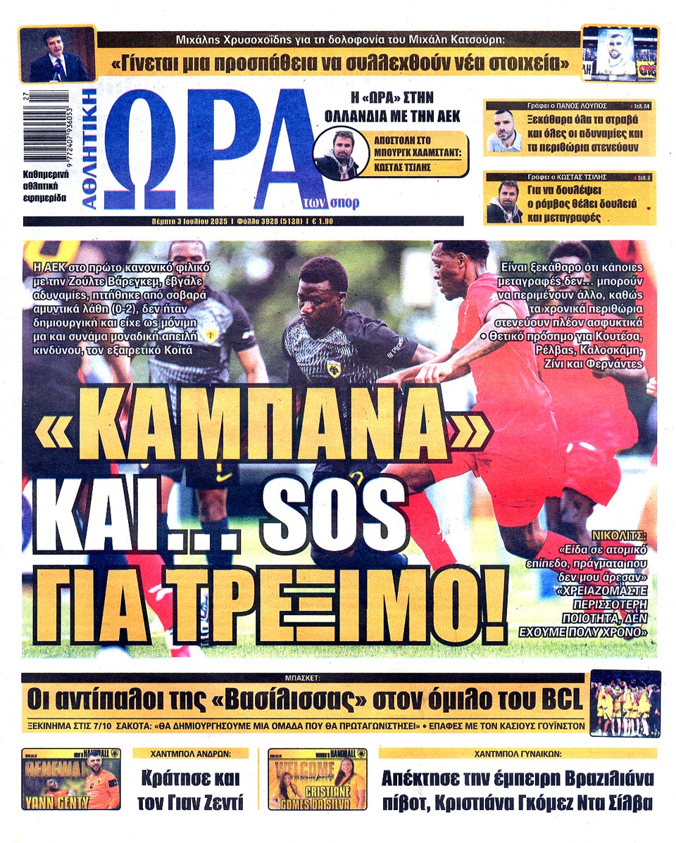 ΑΘΛΗΤΙΚΗ ΩΡΑ ΤΩΝ ΣΠΟΡ - 03 Ιουλίου 2025