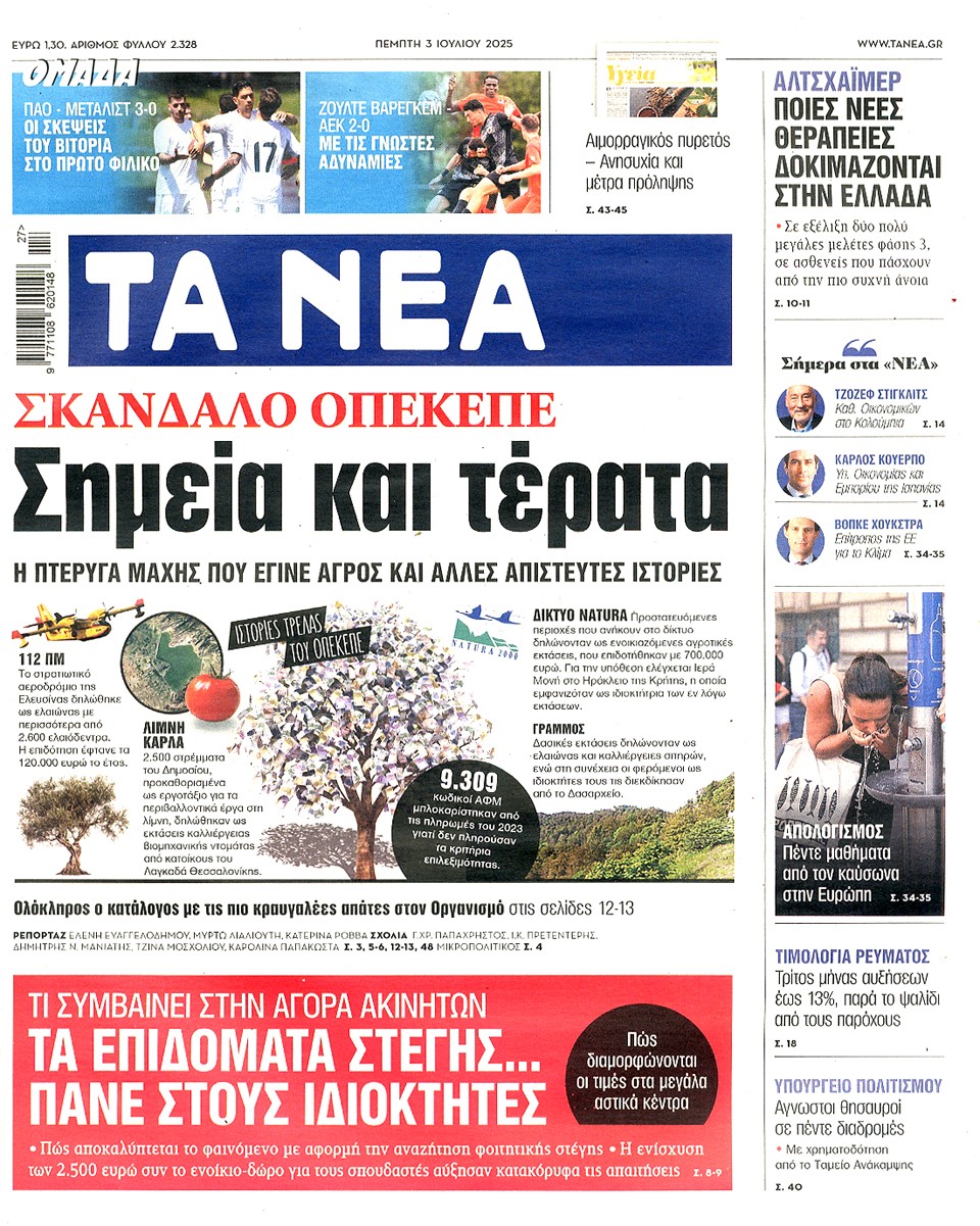 ΤΑ ΝΕΑ - 03 Ιουλίου 2025