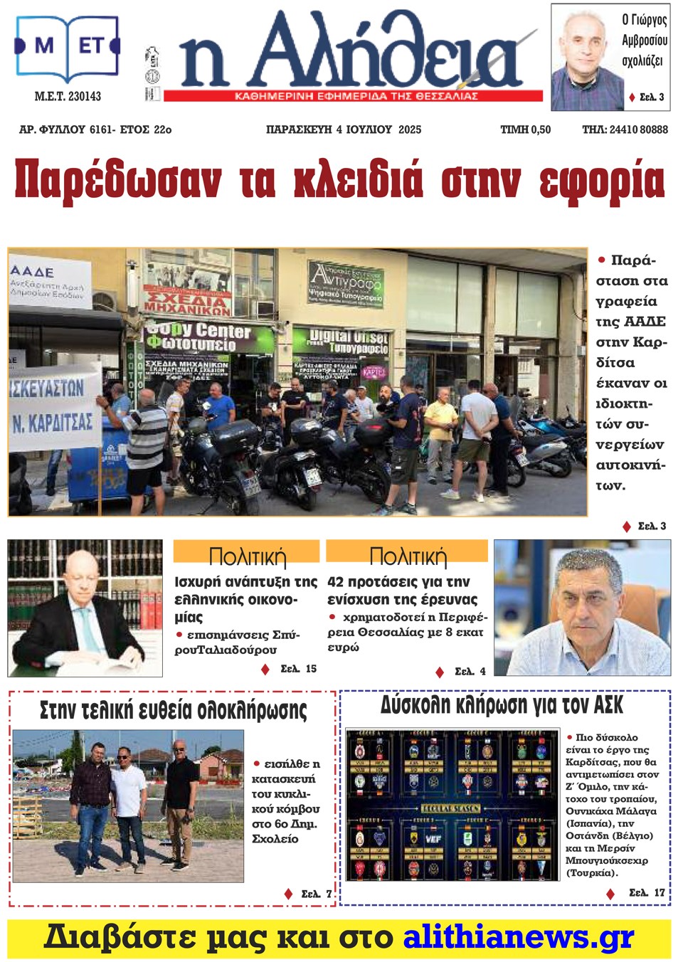 Η ΑΛΗΘΕΙΑ - 04 Ιουλίου 2025