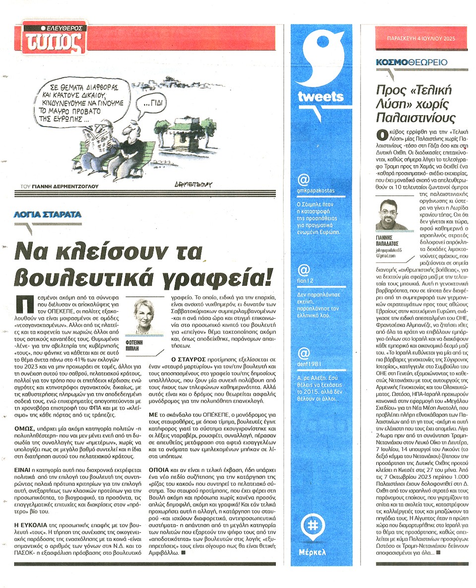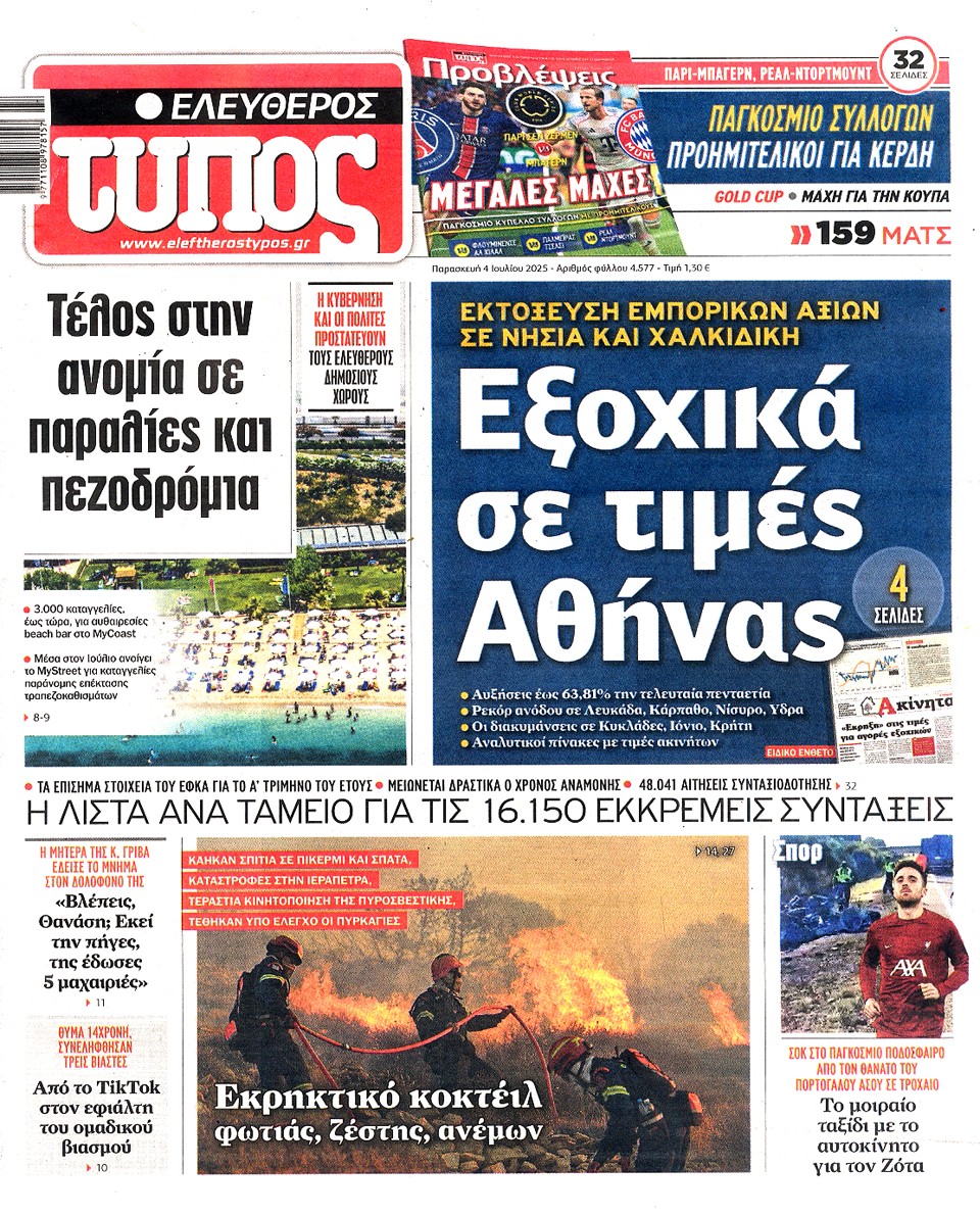 ΕΛΕΥΘΕΡΟΣ ΤΥΠΟΣ - 04 Ιουλίου 2025