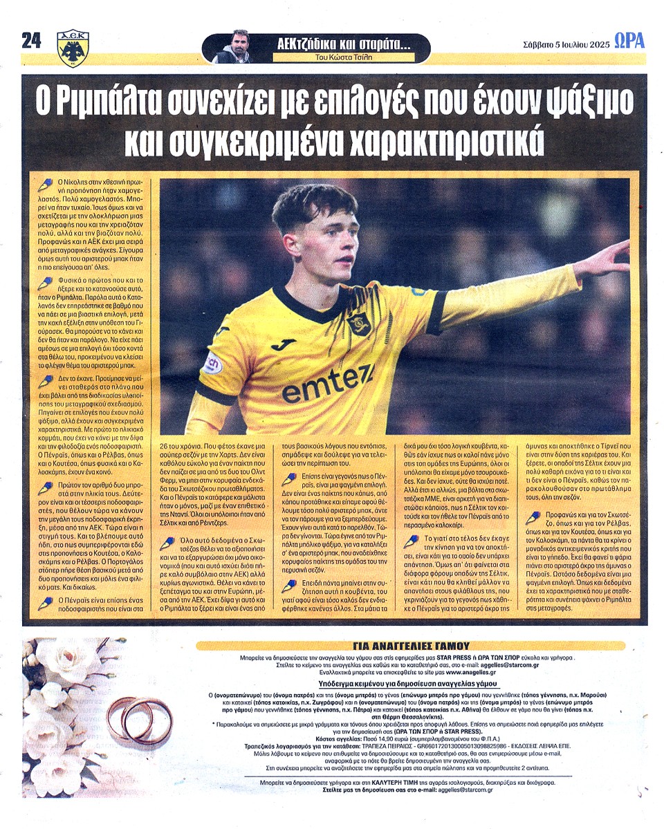 ΑΘΛΗΤΙΚΗ ΩΡΑ ΤΩΝ ΣΠΟΡ - 05 Ιουλίου 2025