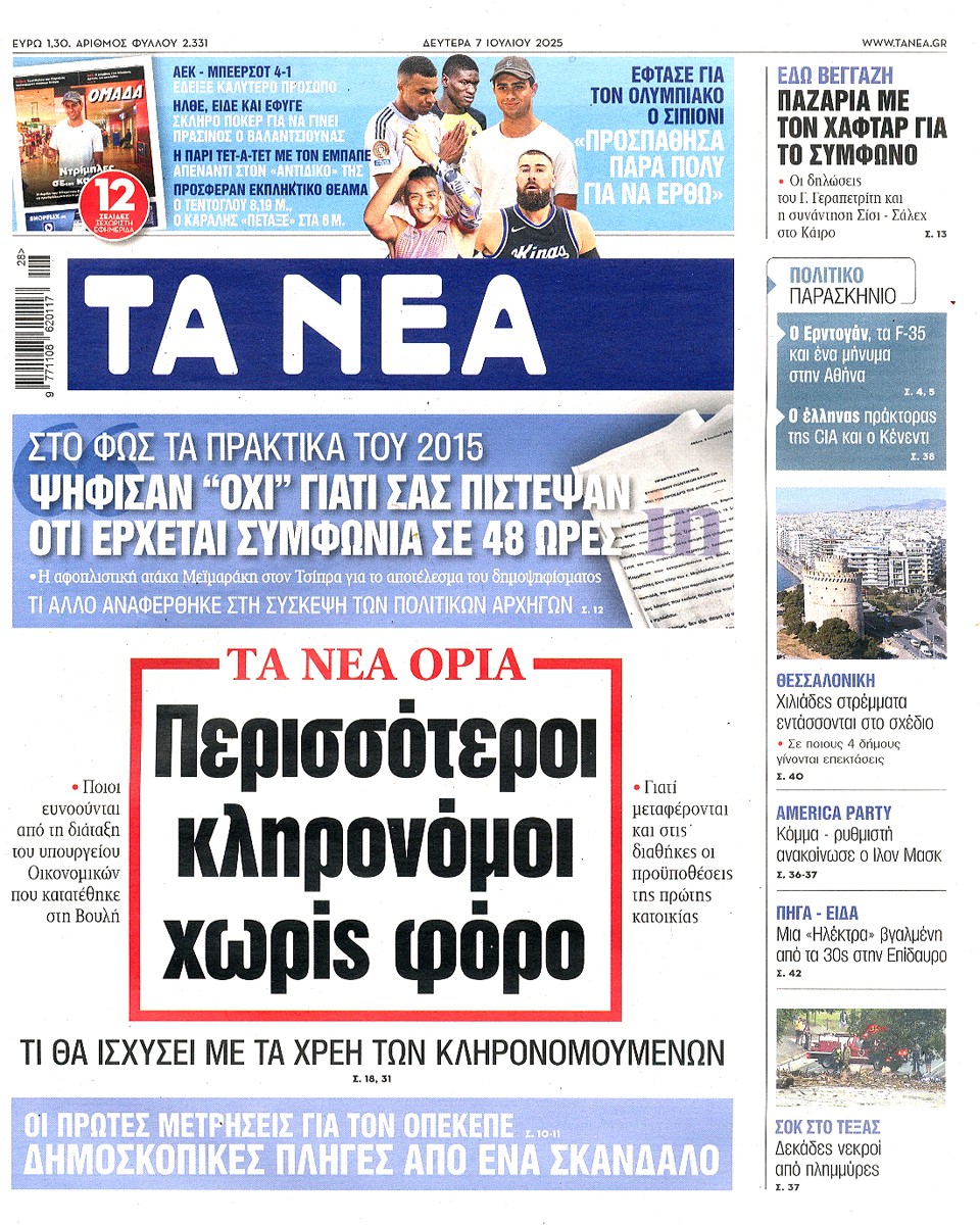 ΤΑ ΝΕΑ - 07 Ιουλίου 2025