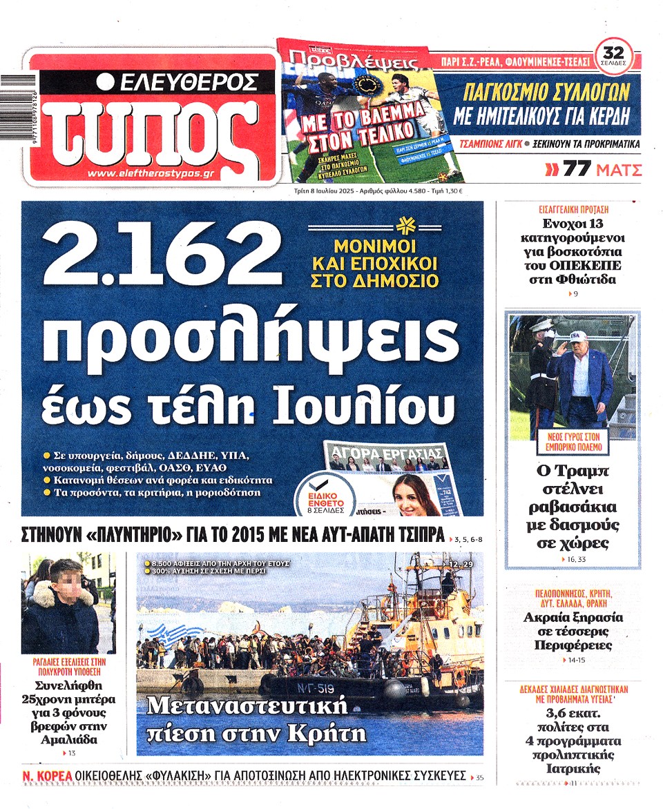ΕΛΕΥΘΕΡΟΣ ΤΥΠΟΣ - 08 Ιουλίου 2025
