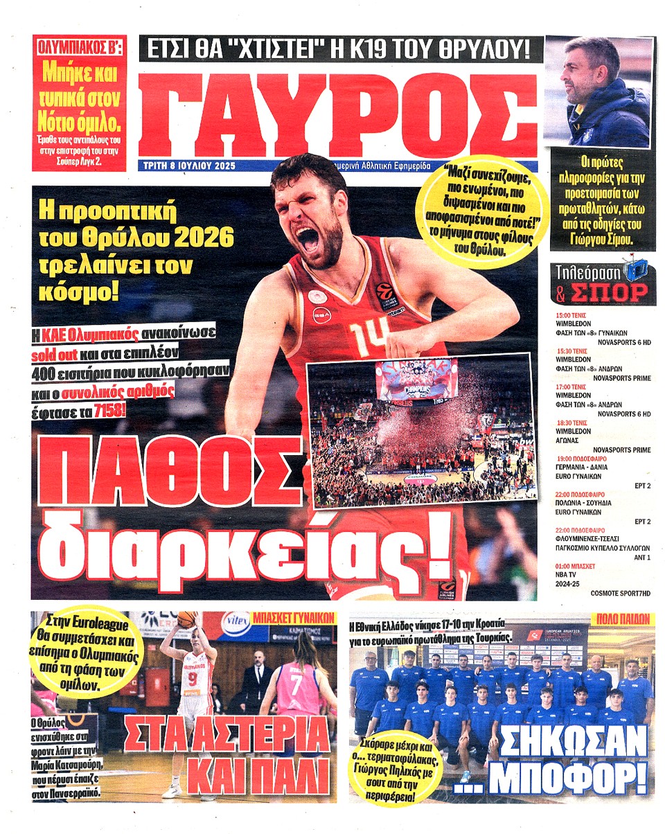 ΠΡΩΤΑΘΛΗΤΗΣ - 08 Ιουλίου 2025