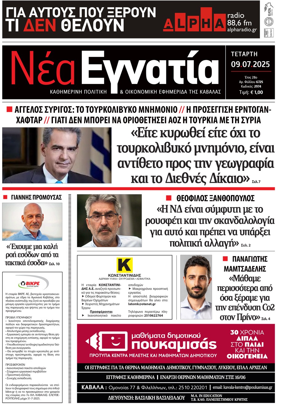 ΝΕΑ ΕΓΝΑΤΙΑ - 09 Ιουλίου 2025