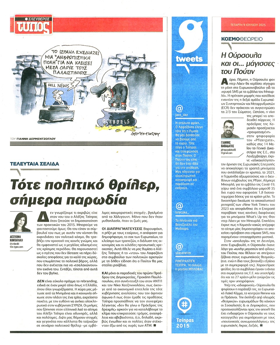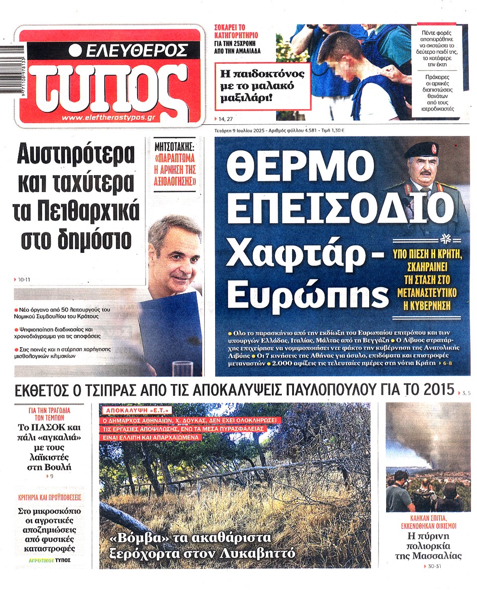 ΕΛΕΥΘΕΡΟΣ ΤΥΠΟΣ - 09 Ιουλίου 2025