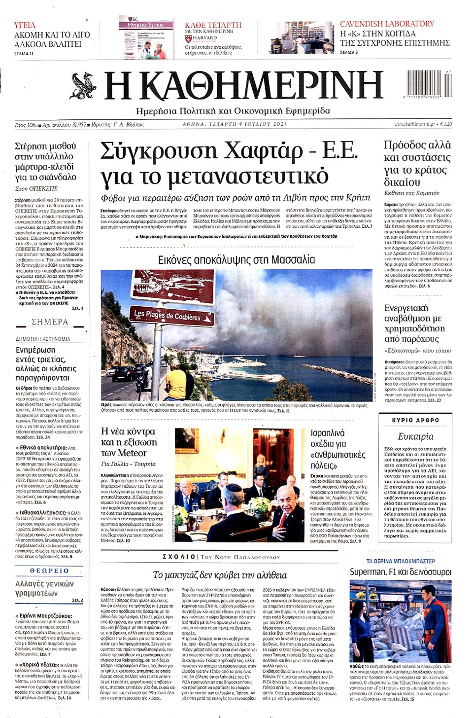 ΚΑΘΗΜΕΡΙΝΗ - 09 Ιουλίου 2025