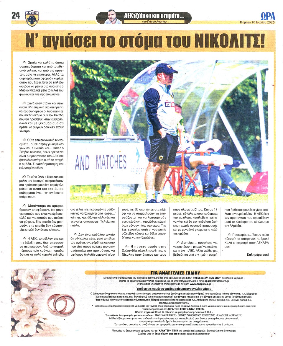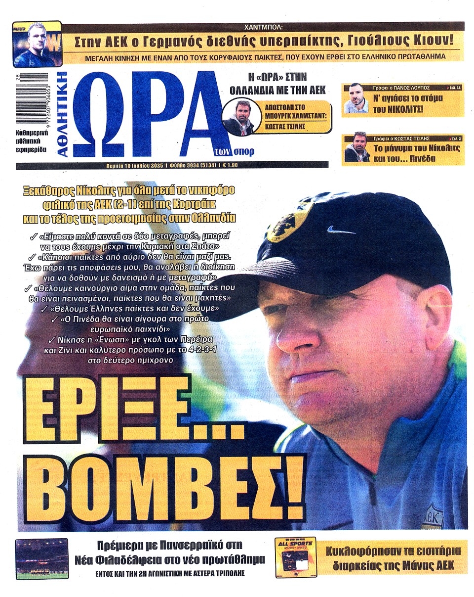 ΑΘΛΗΤΙΚΗ ΩΡΑ ΤΩΝ ΣΠΟΡ - 10 Ιουλίου 2025
