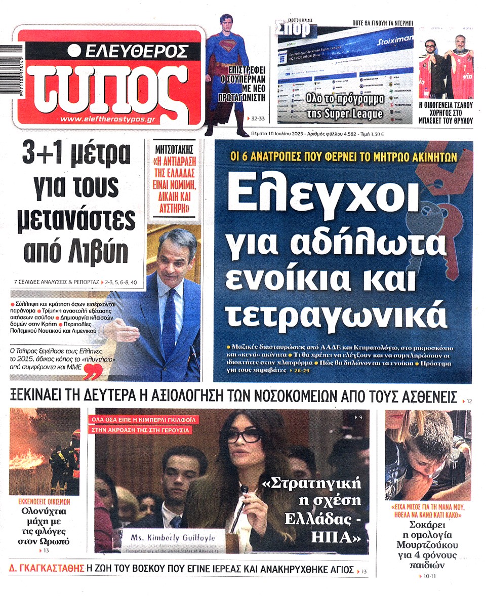 ΕΛΕΥΘΕΡΟΣ ΤΥΠΟΣ - 10 Ιουλίου 2025