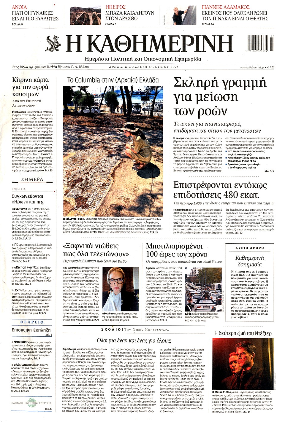 ΚΑΘΗΜΕΡΙΝΗ - 11 Ιουλίου 2025