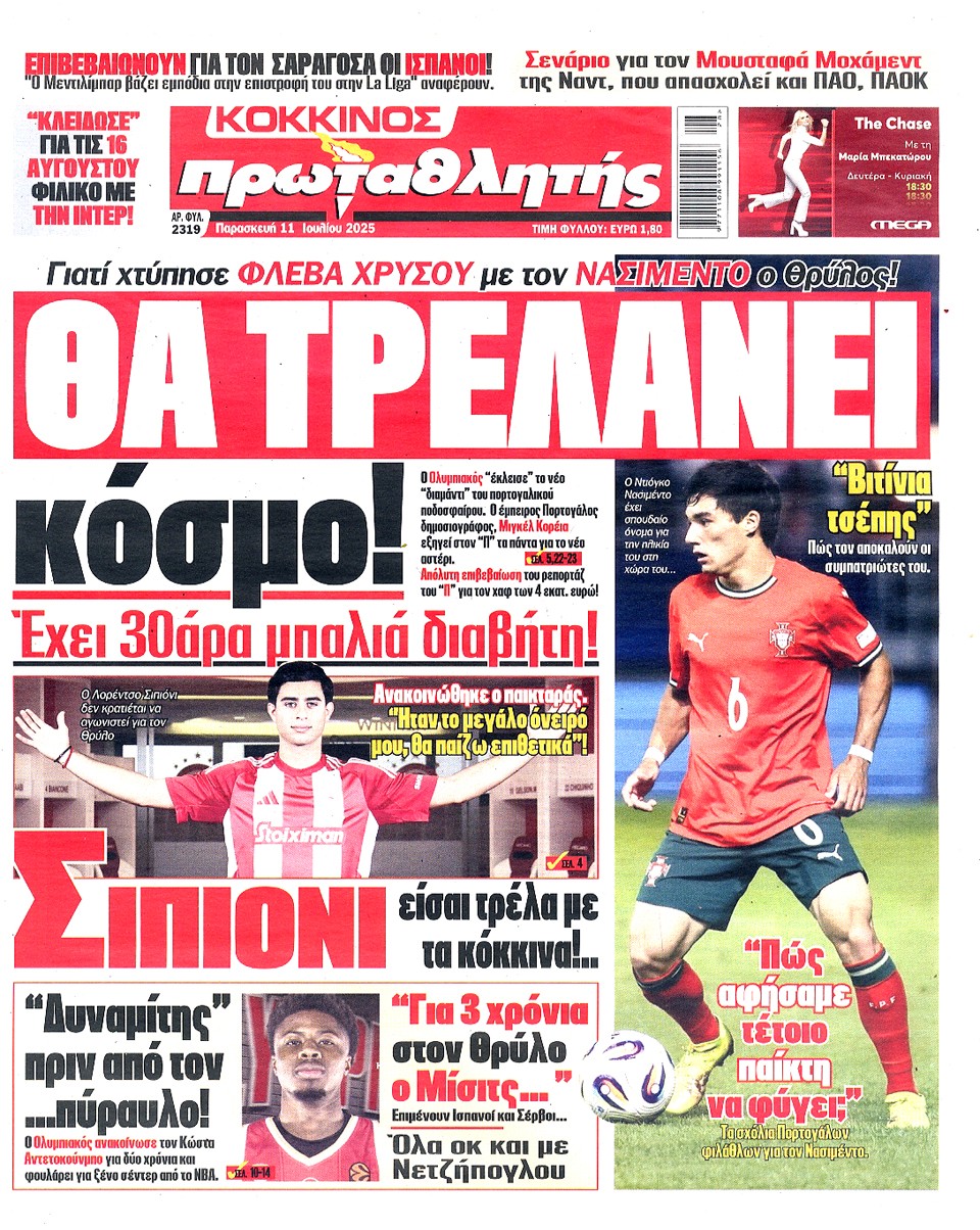 ΠΡΩΤΑΘΛΗΤΗΣ - 11 Ιουλίου 2025