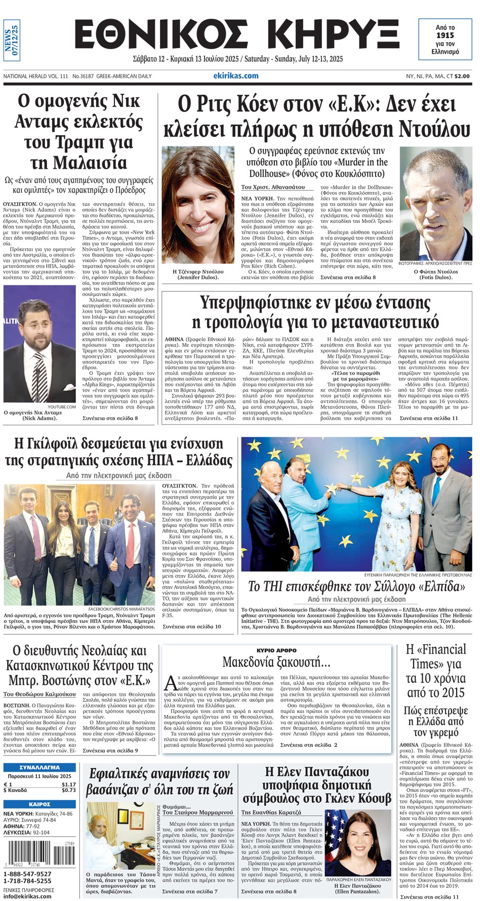 ΕΘΝΙΚΟΣ ΚΗΡΥΞ - 12 Ιουλίου 2025
