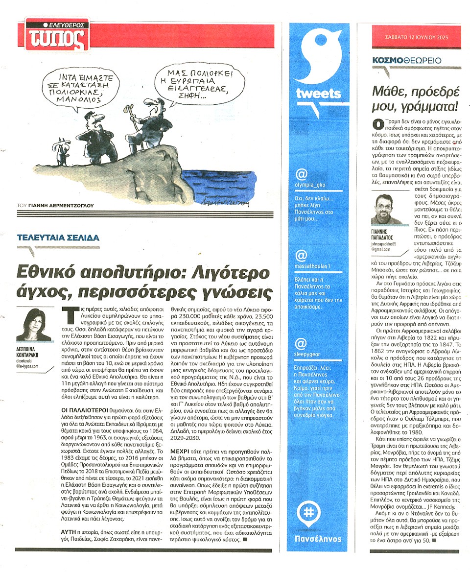 ΕΛΕΥΘΕΡΟΣ ΤΥΠΟΣ - 12 Ιουλίου 2025