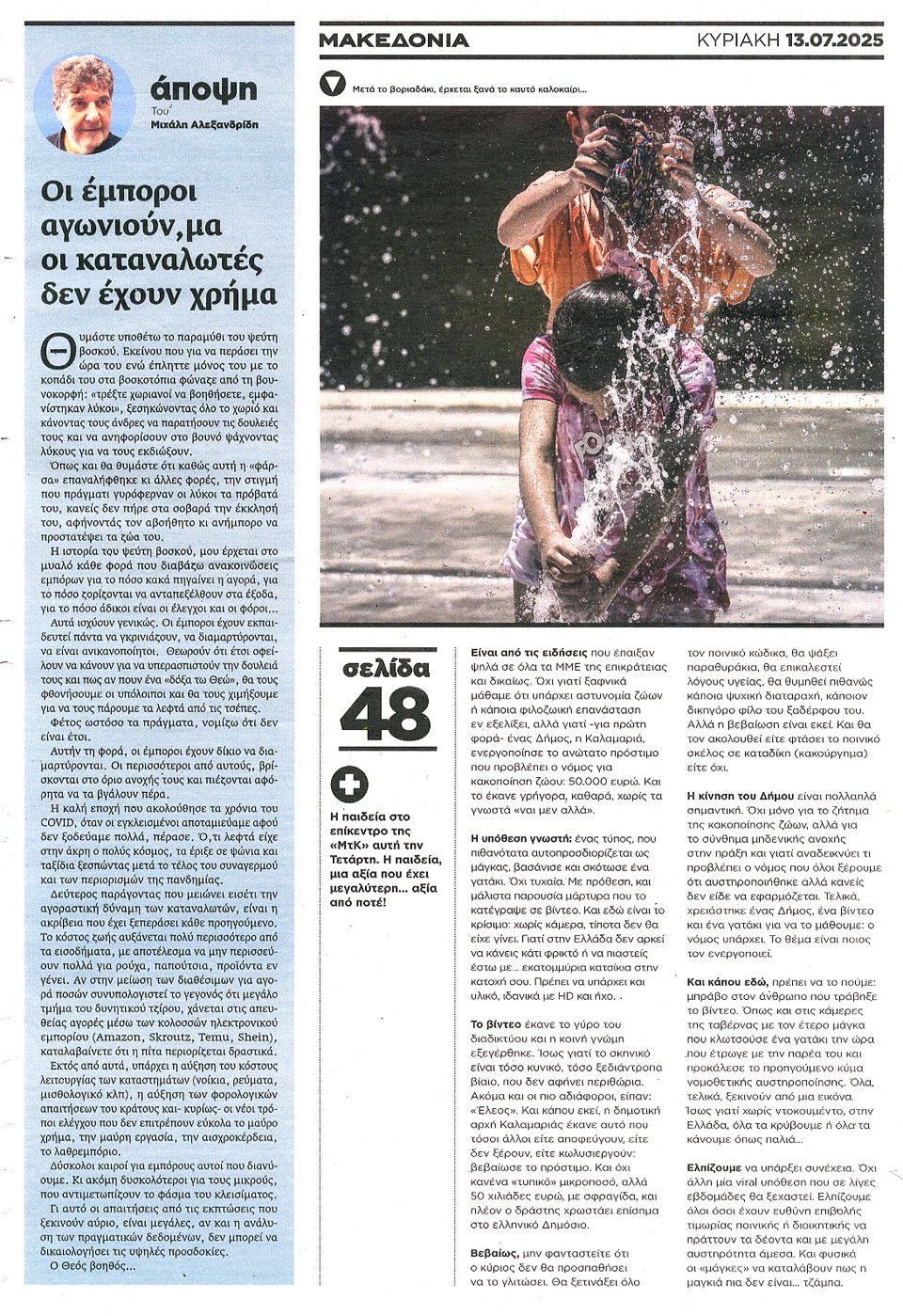 ΜΑΚΕΔΟΝΙΑ ΤΗΣ ΚΥΡΙΑΚΗΣ - 13 Ιουλίου 2025