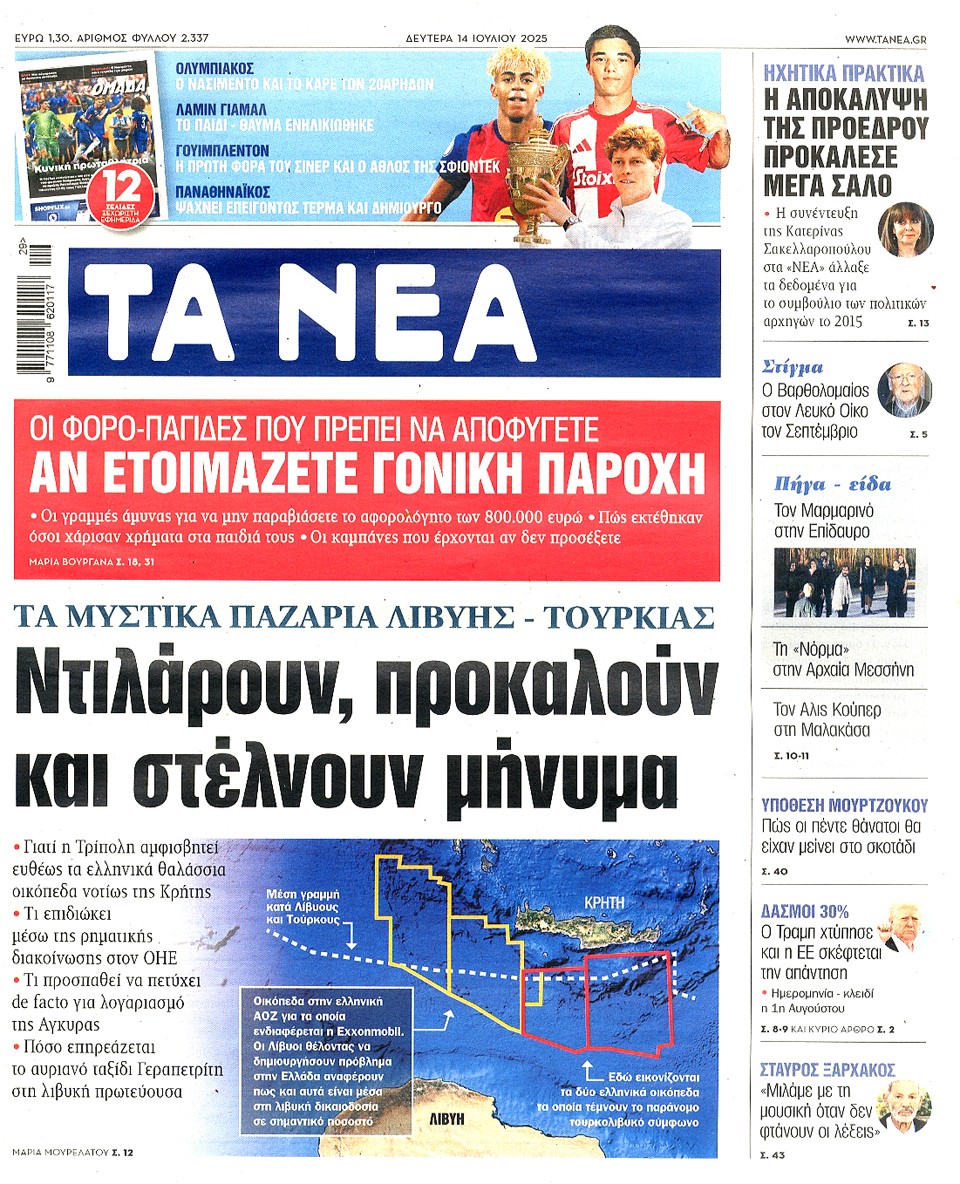 ΤΑ ΝΕΑ - 14 Ιουλίου 2025
